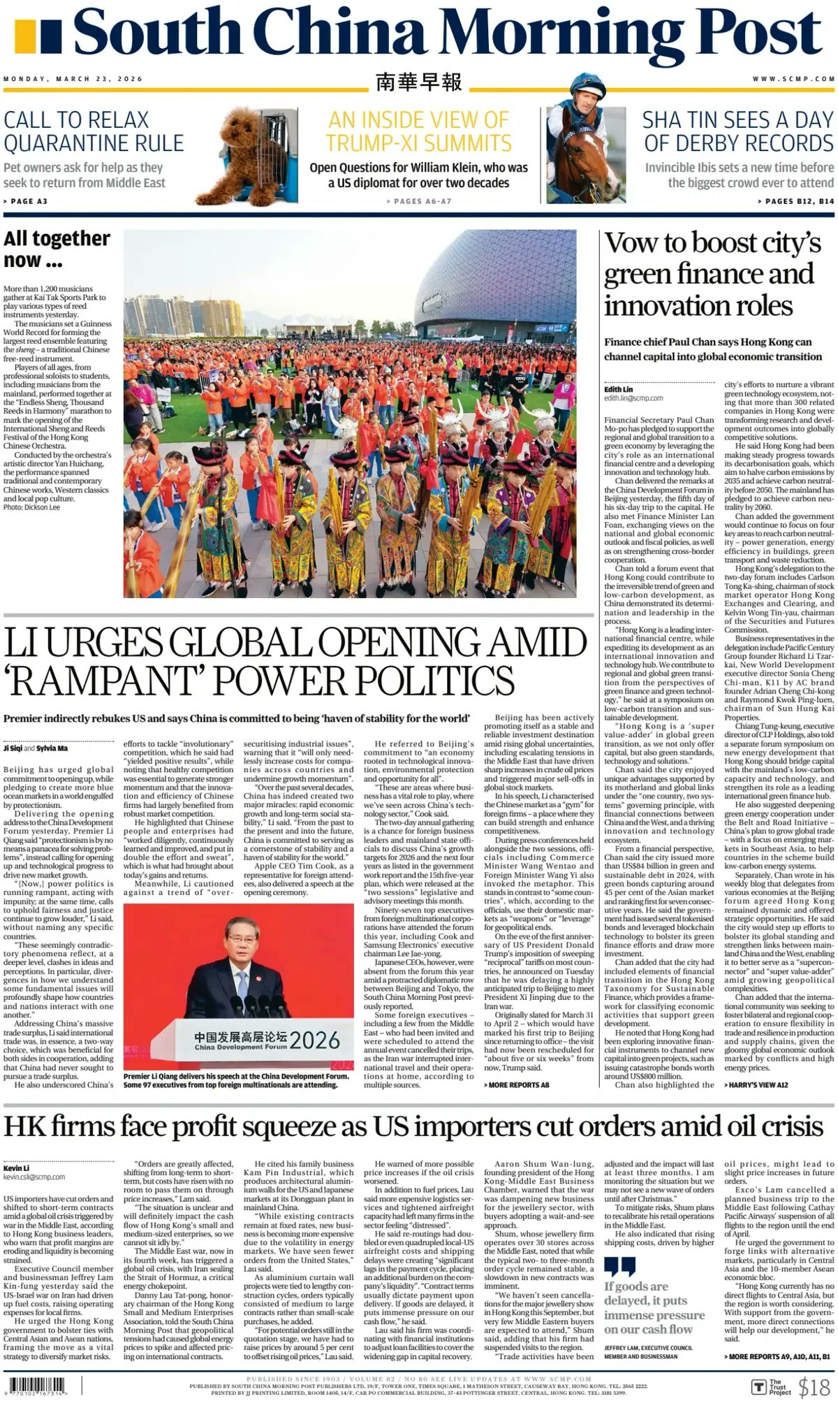 I titoli di oggi: Pechino promette investimenti esteri e libero mercato Impennata nel trasporto ferroviario merci tra Cina e EuropaLa Ci