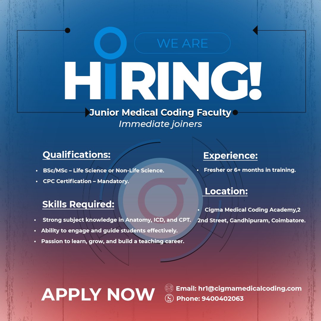 Apply now : cigmamedicalcoding.com/job-vacancies/…