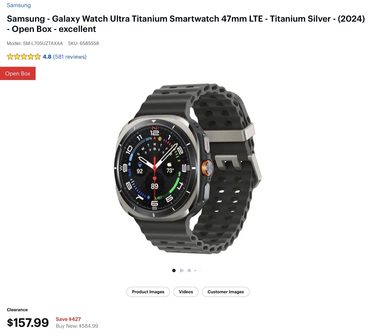 Brand4less @D26585421D · Jan 29 73% price drop Best Buy has Samsung Galaxy Watch Ultra (2024) 47mm LTE, Titanium Silver New Open Box – Excellent for $157.99 (was $585) Insane deal if you’re okay with open box. bestbuy.com/product/samsun…. #BestBuyDeal #Samsung #ClearanceFind 152