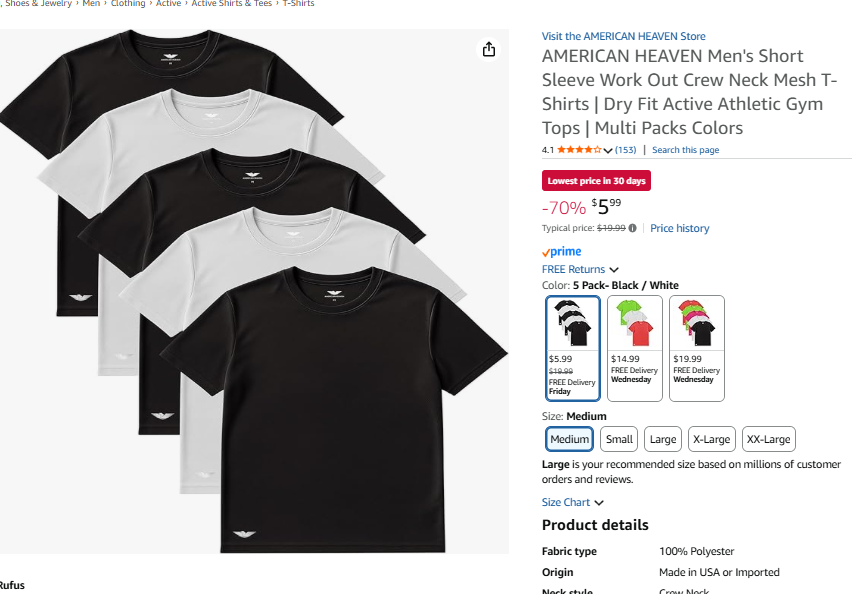 Brand4less @D26585421D · Feb 23 70% off Amazon find: The American Heaven 5-Pack Men’s Short Sleeve Workout Mesh T-Shirts are on sale for $5.99 right now (about 70% off). amzn.to/46ktSiO ad #AmazonDeals #MensActivewear #ClearanceFind 51