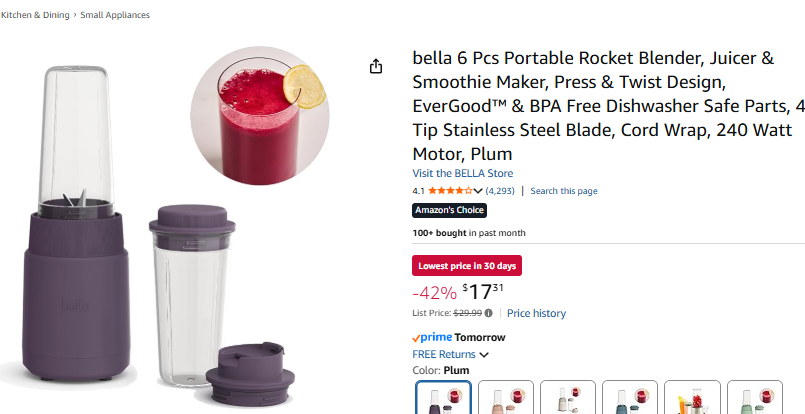 Brand4less @D26585421D · Feb 24 42% off kitchen gear Amazon has the BELLA 6‑Piece Portable Rocket Blender on sale for $17.31 amzn.to/46oync7 ad #AmazonDeals #KitchenEssentials #ClearanceFind 35