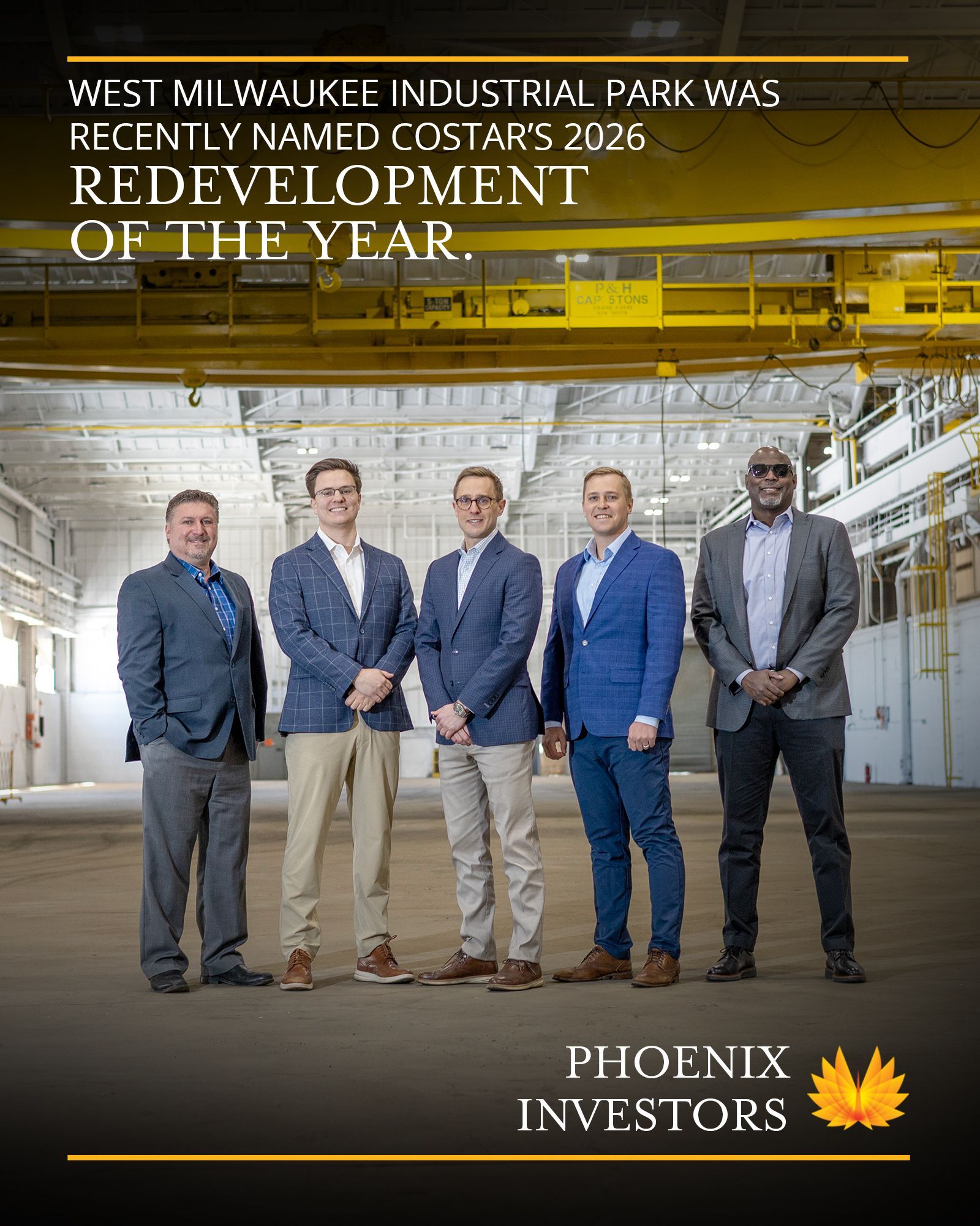 Phoenix Investors’ West #Milwaukee Industrial Park was recently named @CoStarGroup’s 2026 Redevelopment of the Year. To celebrate, #CoStar team members Jim Brewer and Brian Hiemer visited the facility.