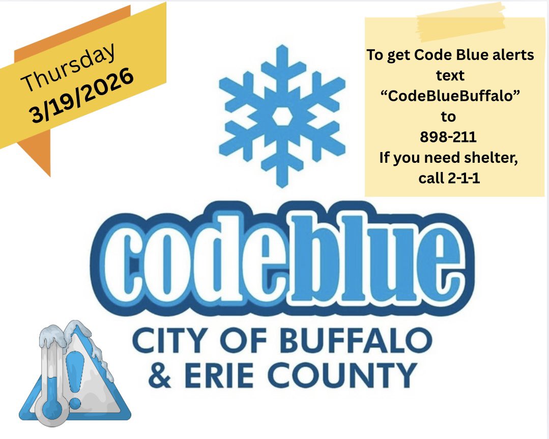 🟦 #CodeBlue tonight Thursday 03/19/2026 in Erie County and the City of Buffalo