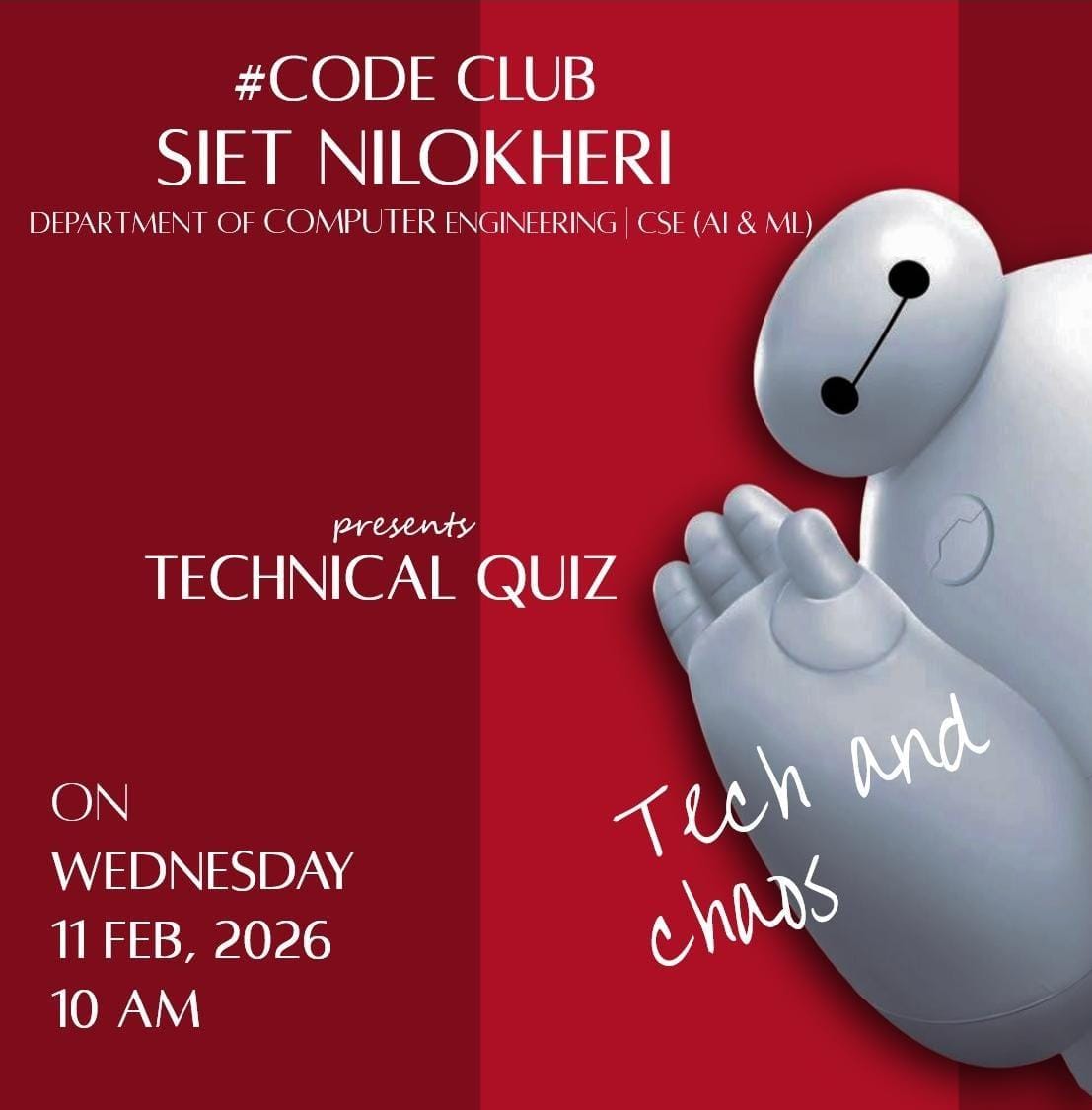 " Tech Enthusiasts Unite! Join our Coding Bootcamp—Build your first app in 2 days (Oct 12-13, 2-5 PM, Room 302)! Free snacks, expert mentors, and a fun community. DM for sign-up or drop a below if you’re in! #CodeClub #TechAdventure"