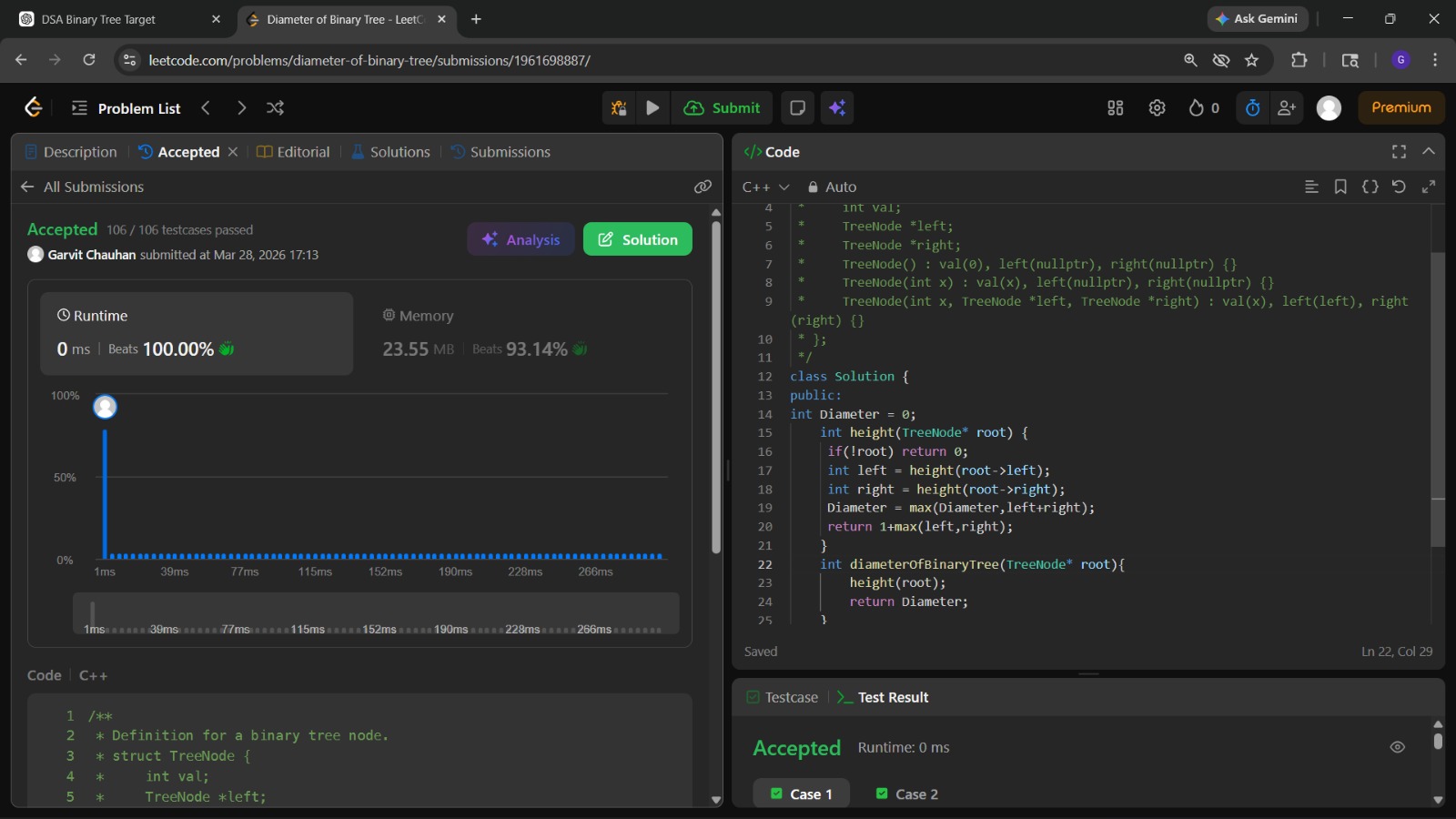 ✔️ Calculated Diameter of Binary Tree