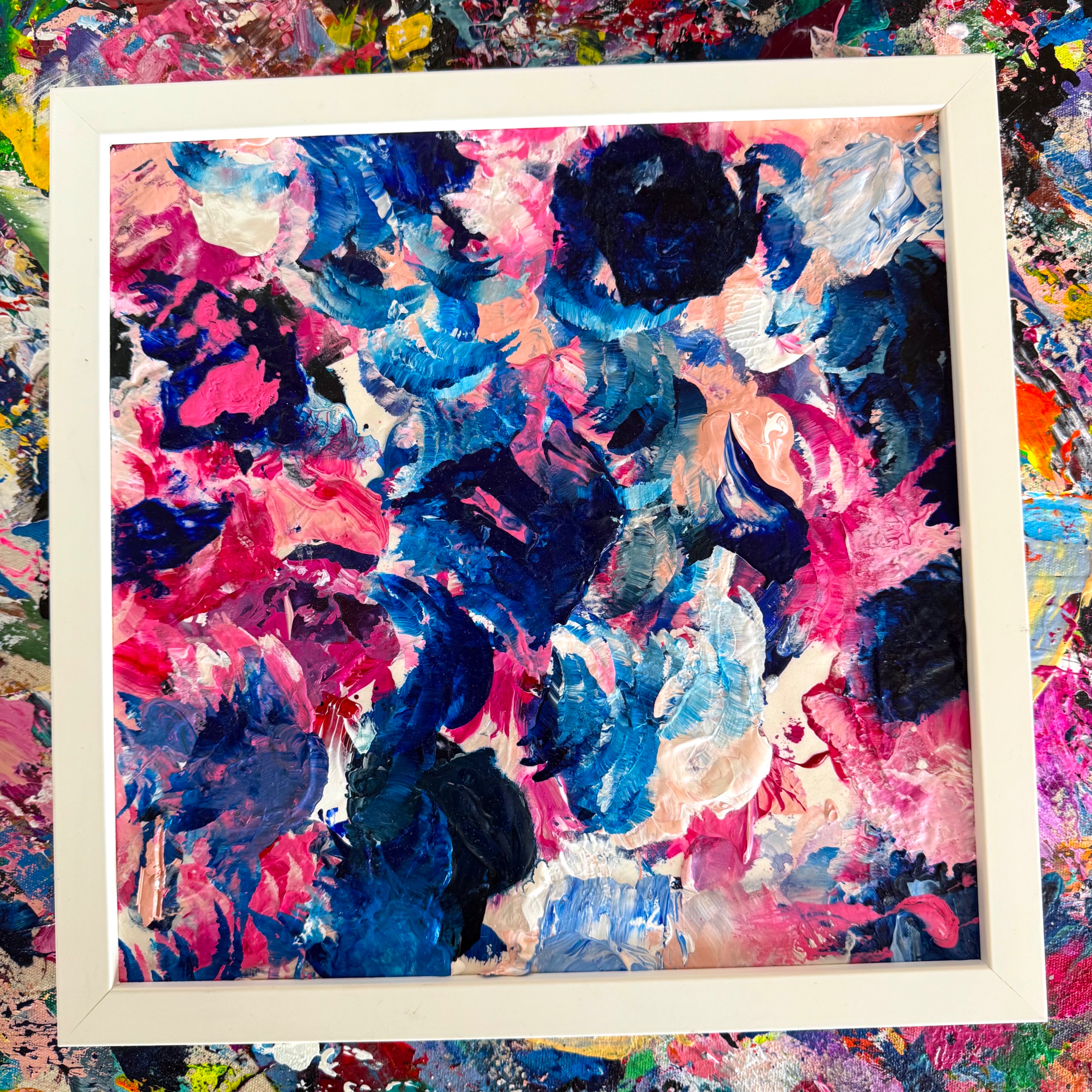 This is the framed palette from a recent commission. I often frame these as collector's items and accessory gifts when I do commissions. I also have a full collection of these from a series I call my "Beautiful Accidents."