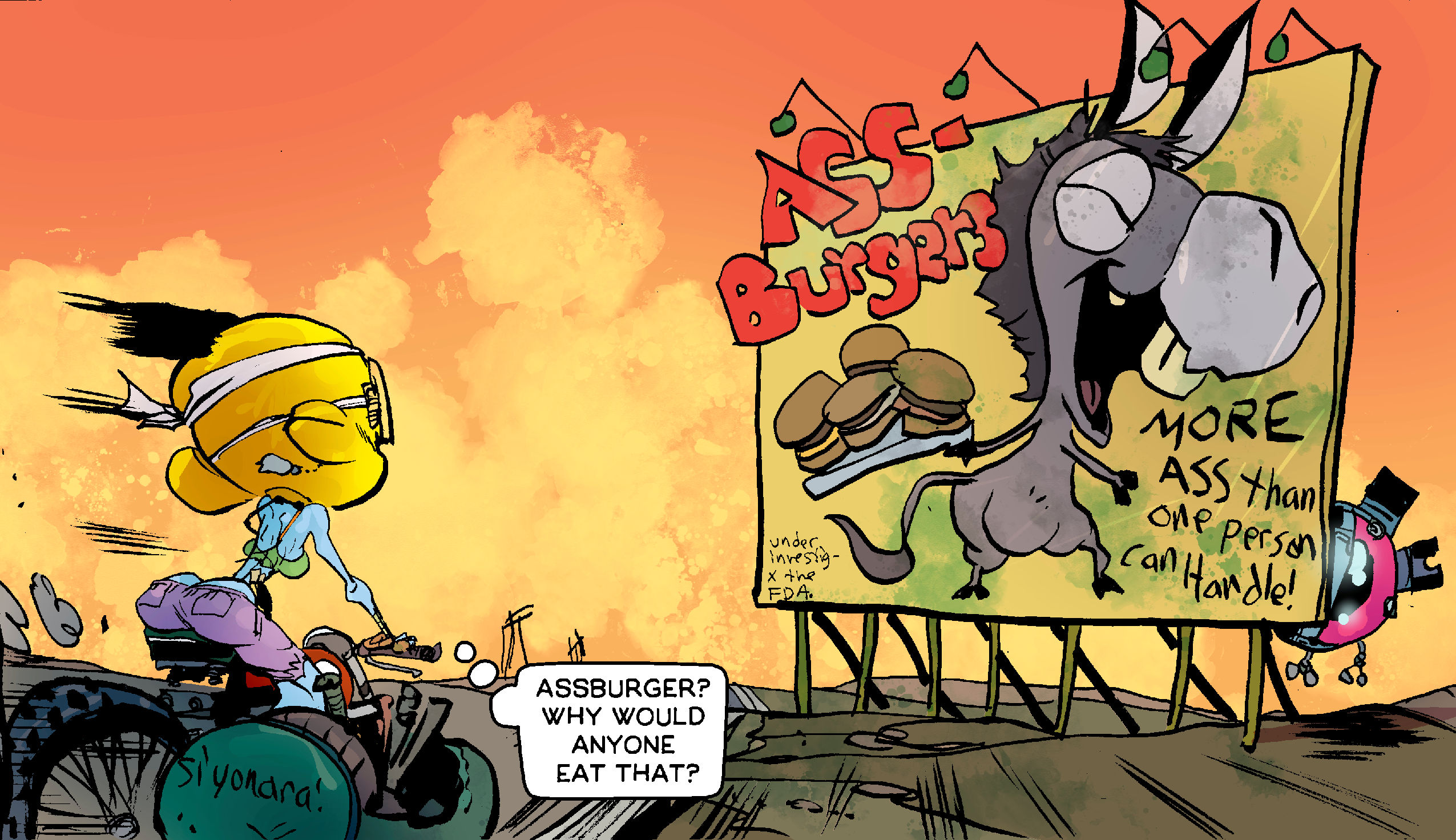 Jack Stewart @Jack_Stewart · 17h Assburgers. Why would you eat that? A sneak peek of our upcoming @nuclearnerds comic, #TheShoah from the phenomenal @AdamArcherArt! #color #characters #comics #madness 1 15