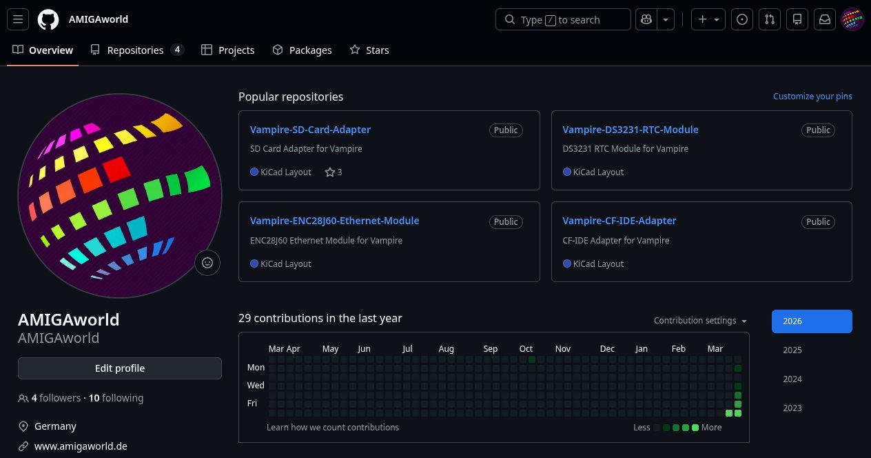 AMIGAworld @AmigaWorld · 7h Wir haben auf unserer GitHub Seite ein paar kleinere Schaltungen für verschiedene Vampire Karten von Apollo Computer veröffentlicht. #commodore #amiga #amigaos #amigaworld #vampire #fpga #hardware #retro #github github.com/AMIGAworld 3 95