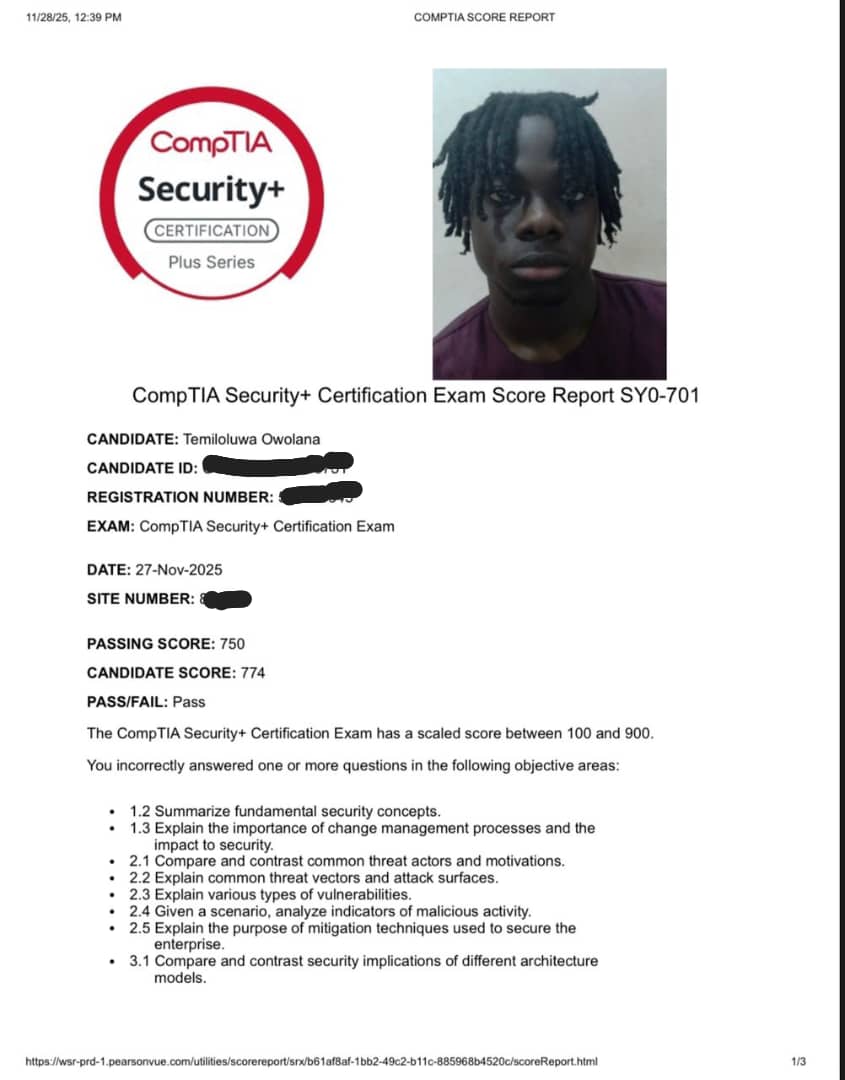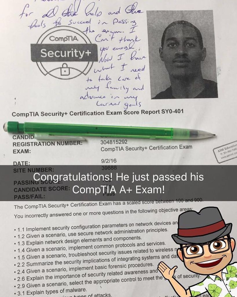 Massive congratulations to Temi for acing the CompTIA Security+ exam today!