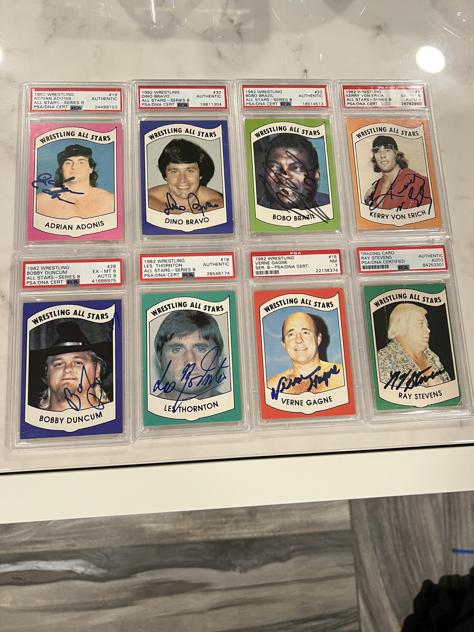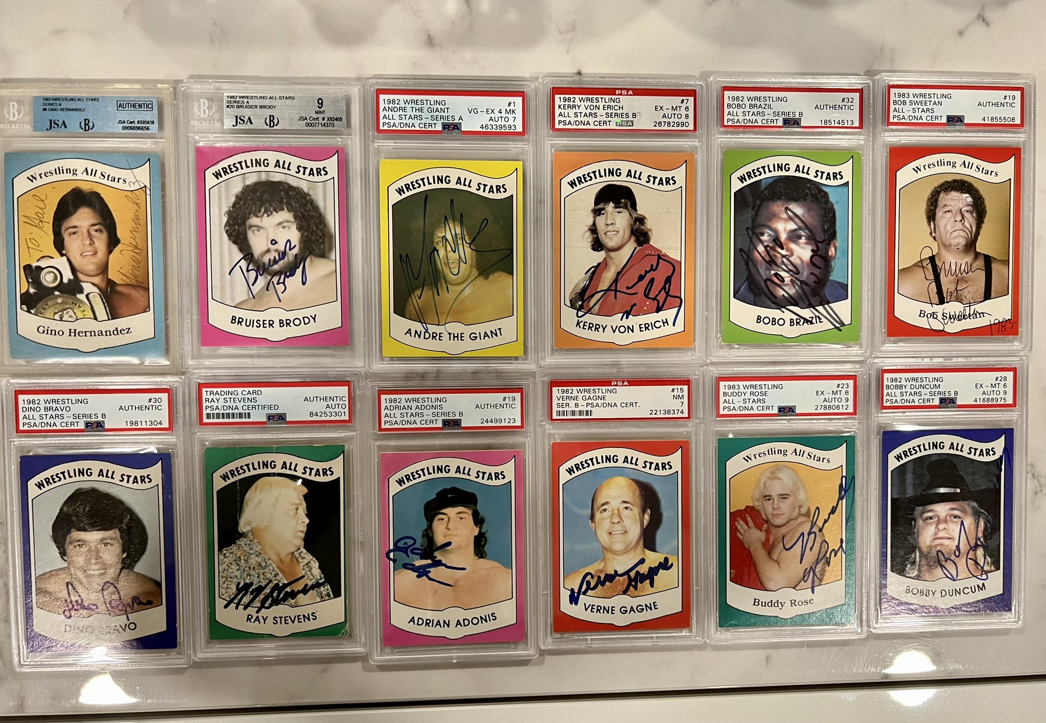 Uncle Danny @danny313131 · Sep 13, 2022 I love everything about the 1982 Wrestling All Stars Series B autograph set. These 8 are are the rarest and “Top Pop” cards too. #completesets #thehobby #king #wrestlingcards @dpeck100 @MilSantos13 @frankiesaints @KNAPPCOLLECTION @Joey_Graben @Rod25795921 1 12