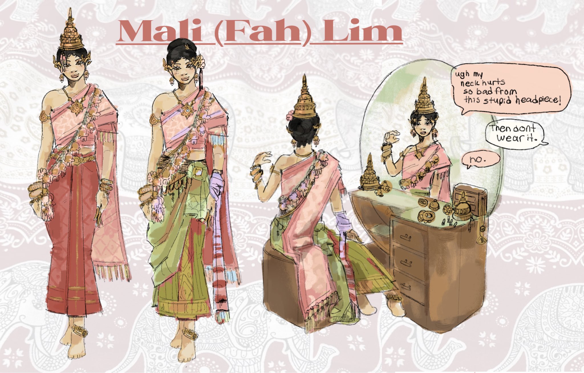 Annabelle @samwicportfolio · 3d One of my favourite oc’s to design, her name is Mali and she is heavily inspired by thai traditional dancing culture #digitalart #conceptdesign #characterdesign 1 11