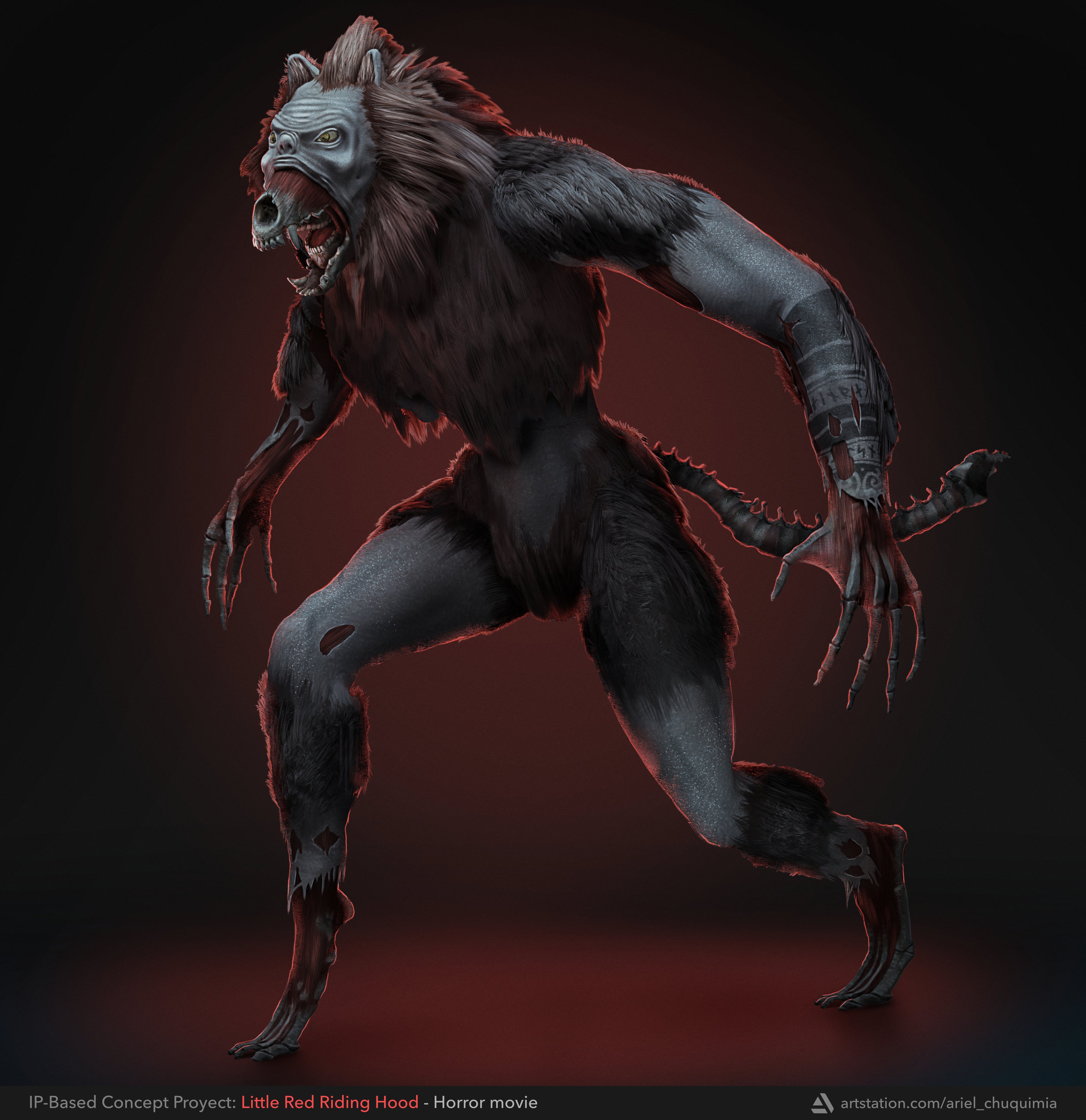 Ariel Chuquimia @arielchuqui · 16h The Wolf - Little Red Riding Hood - Creature Design - Full project: artstation.com/artwork/bgQVar - #conceptart #conceptdesign #entertainmentdesign #creature #horror #wolf 24