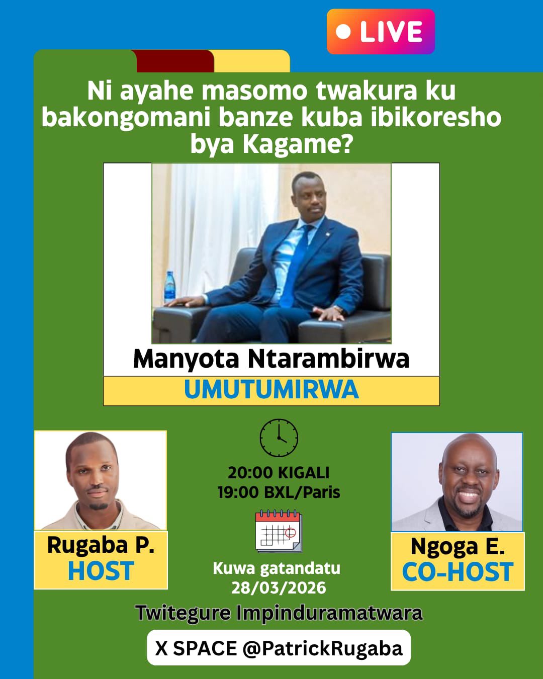 Ni Sambiri z’umugoroba ku isaha yo mu #Rwanda mukiganiro #Twitegure_Impinduramatwara .
