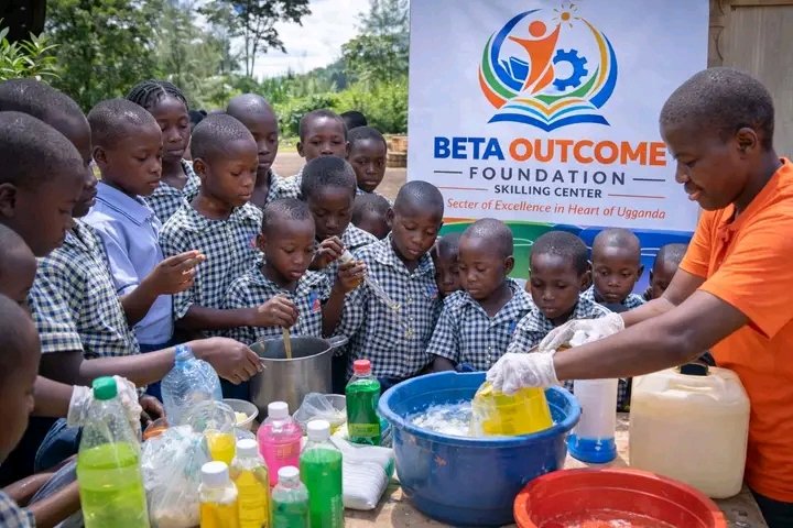 Our beneficiaries #KitiibwaChristianSchools were able to learn how to make liquid soap & jelly Thanks goes to our partners & well-wishers for the support in building a future. #Consider yourself sponsoring a child 2day! betaoutcomefoundation.org