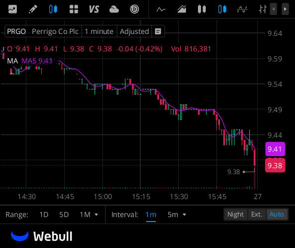 $PRGO trades firm in consumer healthcare, delivering over-the-counter medications and wellness products. Retail demand and product launch updates could spark intraday volatility. 💊🛍️ #ConsumerHealth #OTC #Wellnes4L