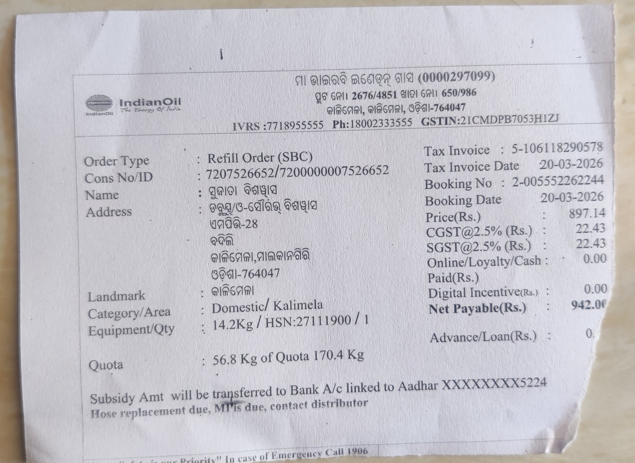 .@IndanePR @IndianOilcl@HardeepSPuri Forced to buy a gas pipe from Maa Bhairabi Gas Agency, Kalimela to get my cylinder. They refused a bill, claimed "registration" only, & intentionally tore the MRP label. This is blatant consumer harassment.