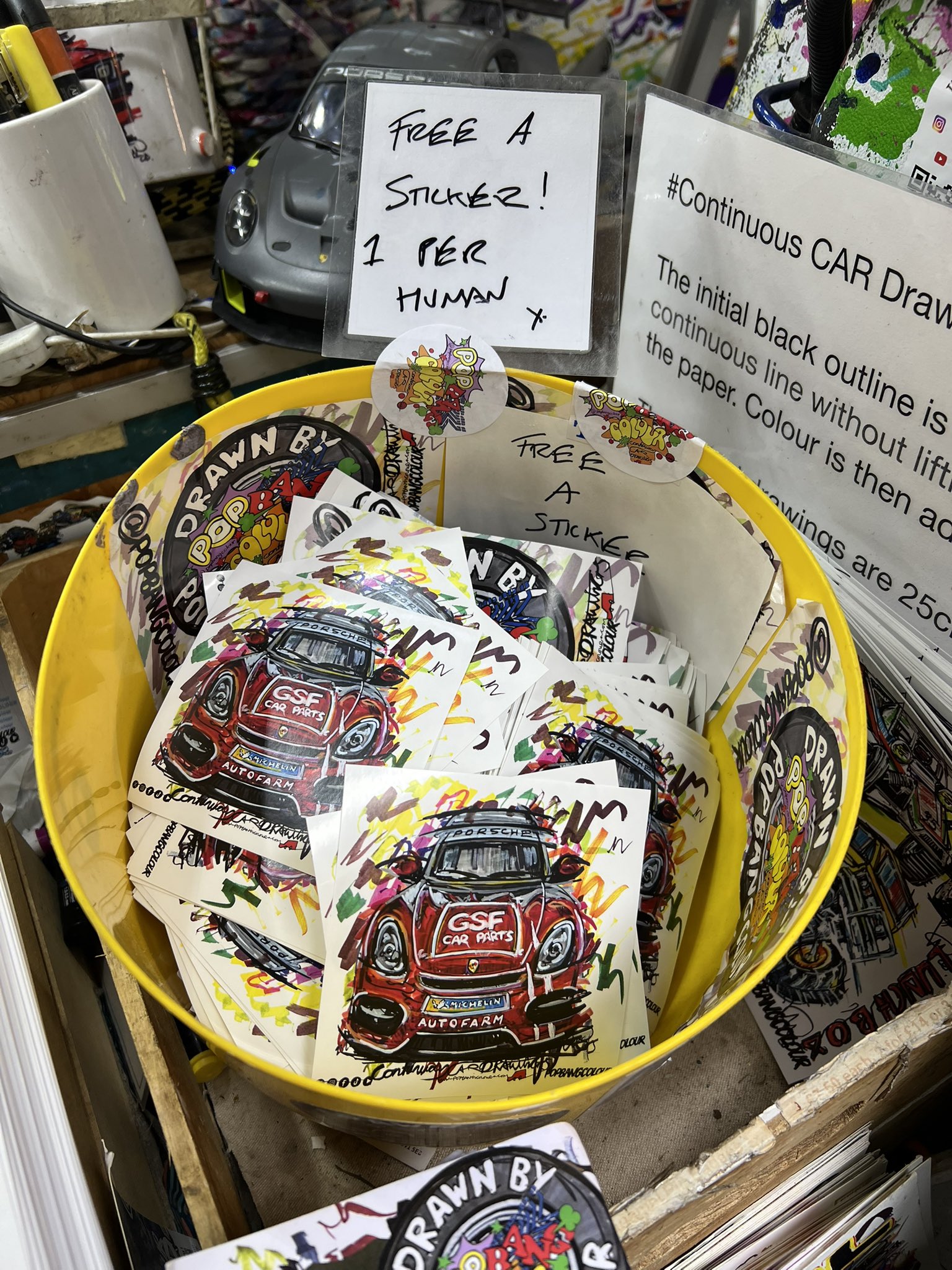 Come & swing by the POPBANGCOLOUR stand, where you can commission your own vehicle as a #ContinuousCar drawing too