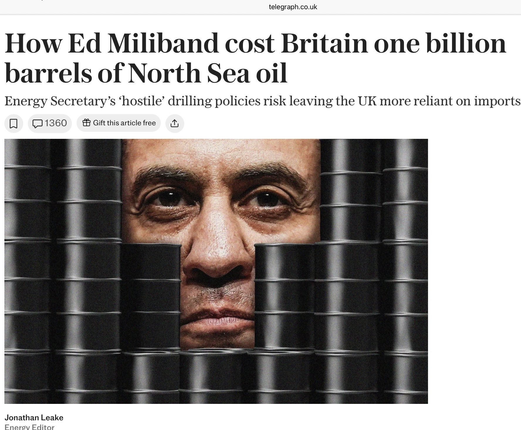 From telegraph.co.ukThe Energy Secretary had previously branded a North Sea oil field 'climate vandalism'