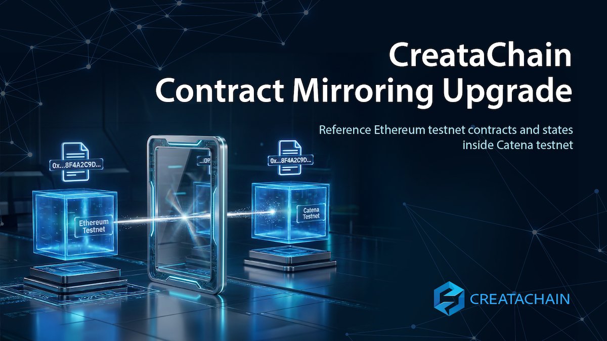 #CreataChain enhances its Smart Contract Tool with advanced mirroring — referencing original Ethereum testnet contract addresses, code & state on Catena testnet. Now includes ERC-20 holder list & balance mirroring for realistic test environments.