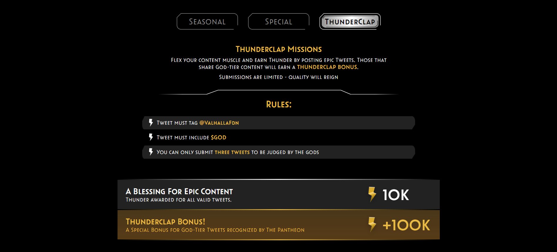 "From the cosmic forge of imagination emerges $GOD-tier content. Let's spark minds and earn the Thunderclap Bonus together! Join me on this epic quest with @ValhallaFdn ⚡️ #CreativeForge#ThunderclapBonus"