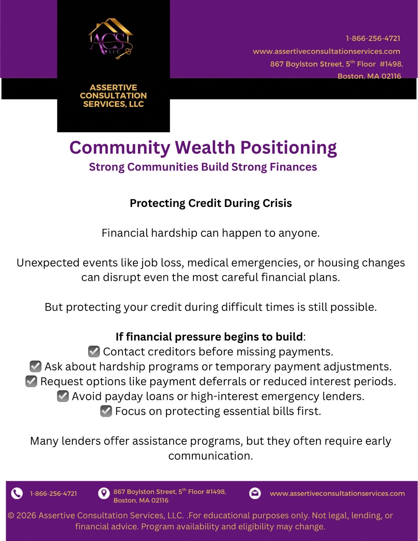 #CreditProtection #FinancialResilience #CommunitySupport #AssertiveConsultationServices