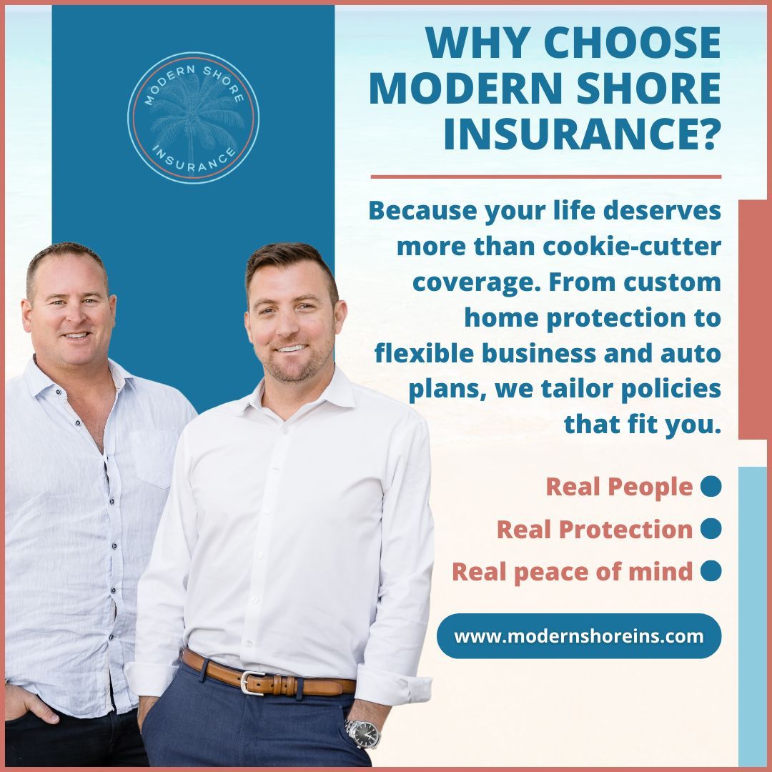 🏡 Your life isn’t one-size-fits-all, and your insurance shouldn’t be either. We tailor home, auto & business coverage around you. Real people. Real protection. 💙 #ModernShoreInsurance #CustomCoverage #FloridaInsurance #HomeAndAuto #BusinessInsurance #PeaceOfMindrO
