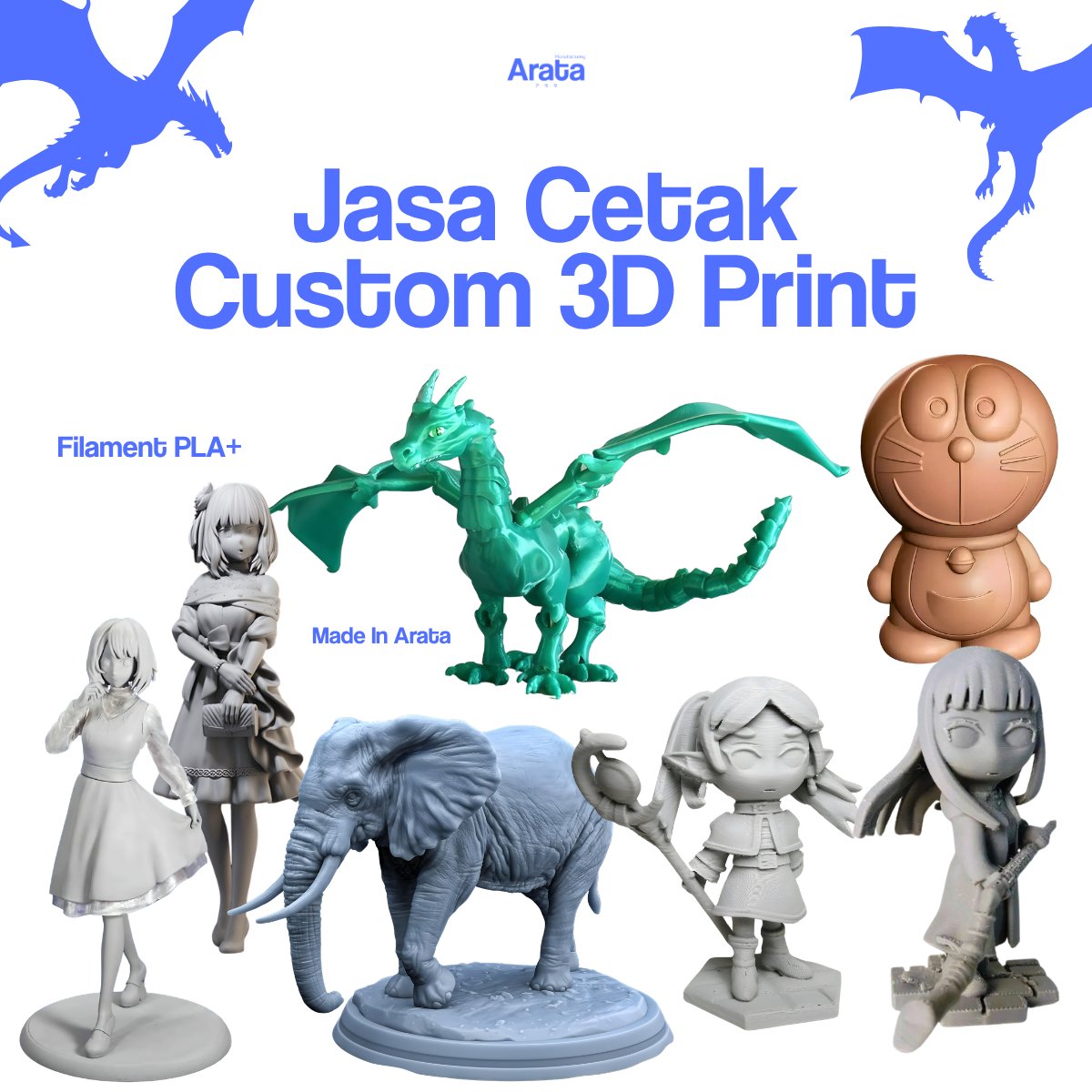 Wujudkan imajinasi jadi nyata! Dari action figure sampai prototipe, semua bisa dicetak dengan detail tajam pakai material PLA+ berkualitas.