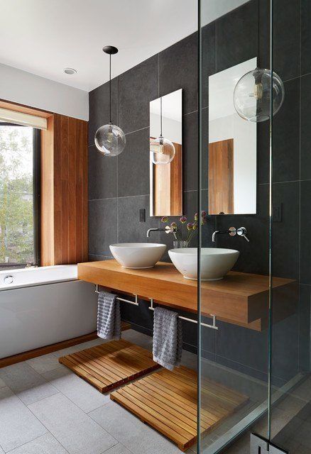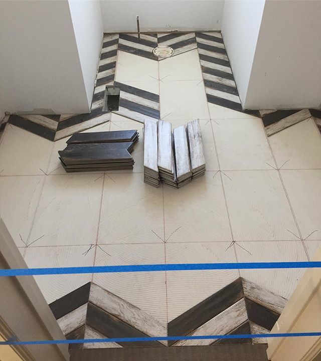 A Chevron pattern takes planning and preparation in this guest suite bathroom. Adrian, a master tile installer, preps all floors and walls this way. So thankful to have him on our team!