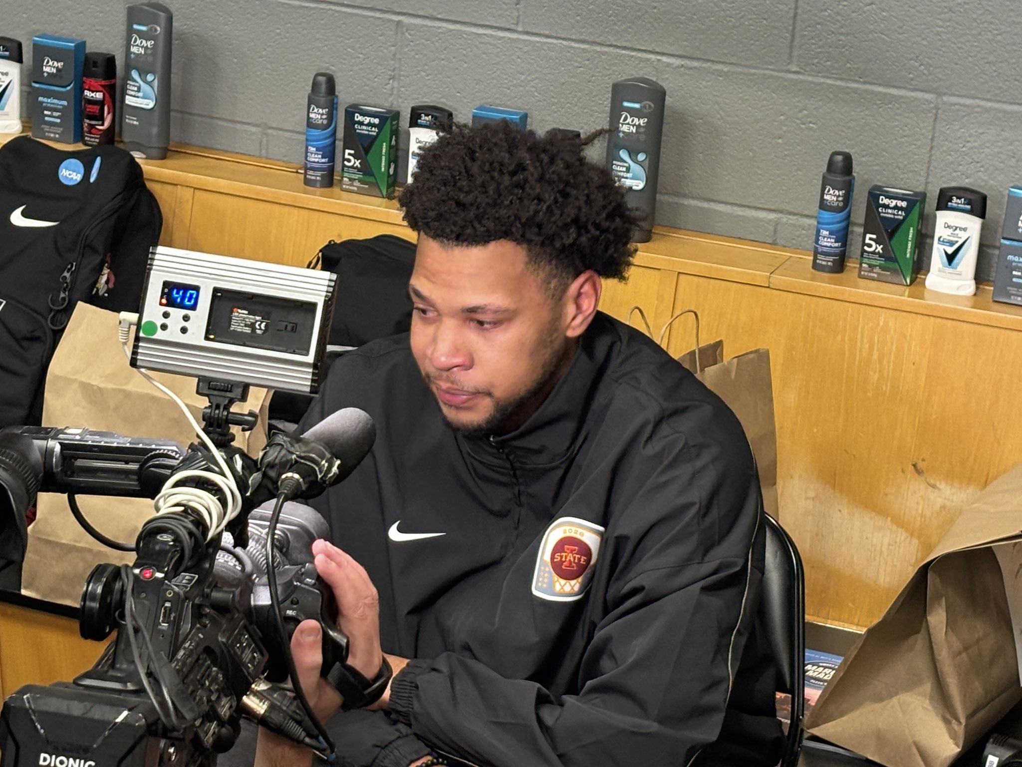 Joshua Jefferson is overcome with tears. I asked if he was close to being able to play, and he said he wasn’t even close and he wouldn’t have been able to play Sunday either. #Cyclones