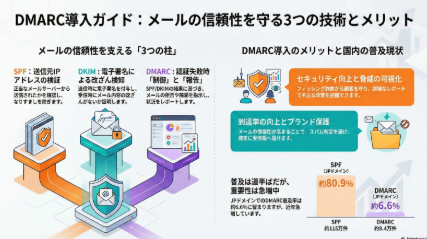 自社ドメインのメールサーバーがDMARC/DKIM未設定だと迷惑メール判定で自社メールが相手に届かない可能性が有ります。