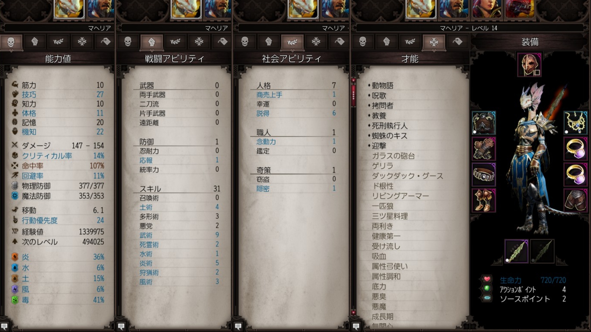 おふ @mofugashi6262 · Mar 21 今日の2周目ディヴィニティ及びDivinity Original Sin2 4章 Lv14になったので現在のPTメンバーのステータス カスタム(主人公) 4章はハゲタカセットの存在で技巧防具が余るから技巧槍戦士 地雷投げたり蛆虫で束縛出来るアタッカーです 6章は筋力防具余るからその時転向するかもしれない #DOS2 1 2 156