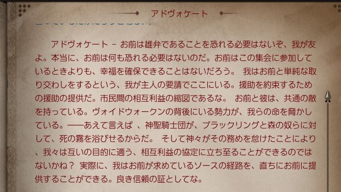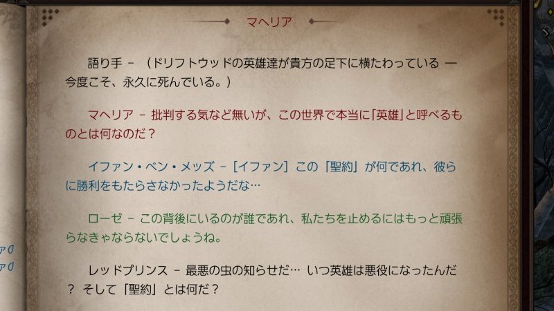 おふ @mofugashi6262 · 4d 今日の2周目ディヴィニティ及びDivinity Original Sin2 4章 アドヴォケーターから死の霧の本質を聞いた後のイファン会話 会話途中で!マーク出してくるから本当気が付きにくいし会話してる間に!マークが消える Divinityの新作ではこう言う所改善して欲しいですね アドちゃん長話だから倍速 #DOS2 1 2 203
