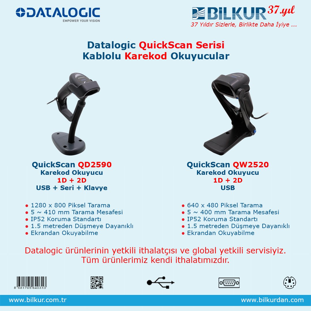DATALOGIC Kablolu Barkod & Karekod Okuyucular Bilkur Stoklarında