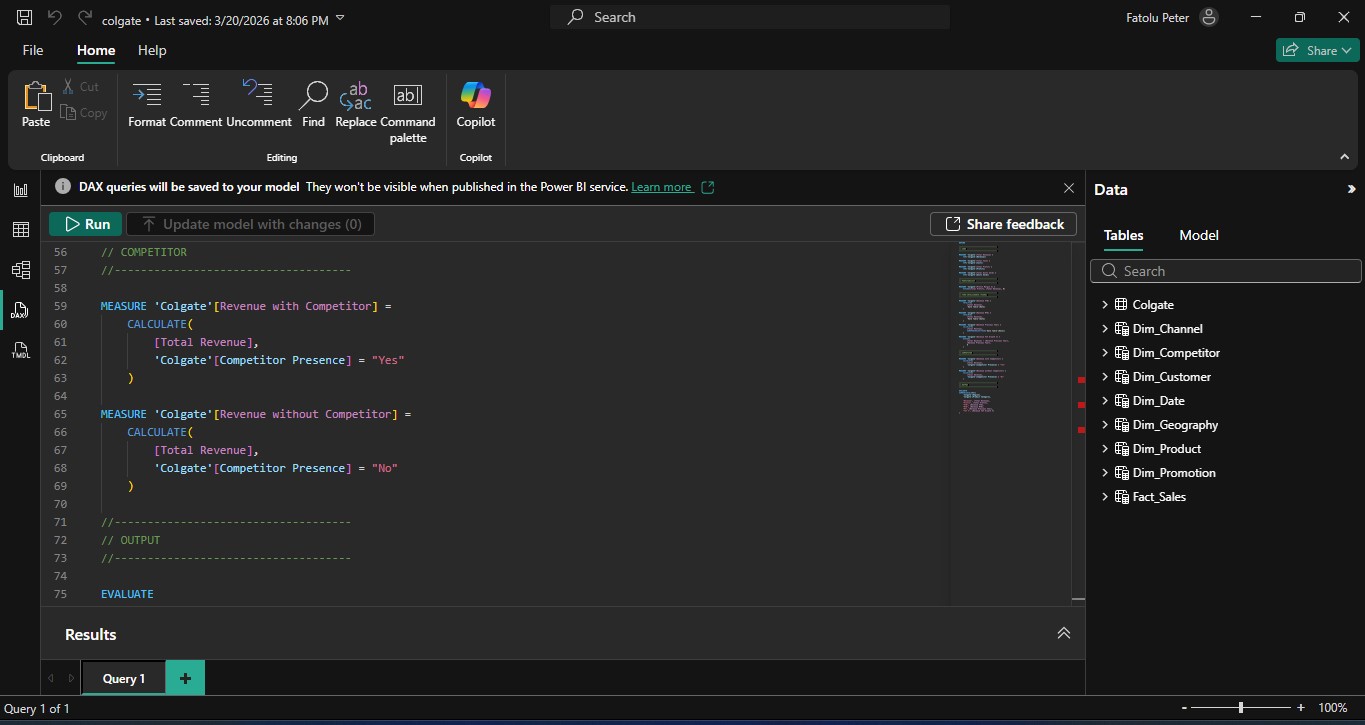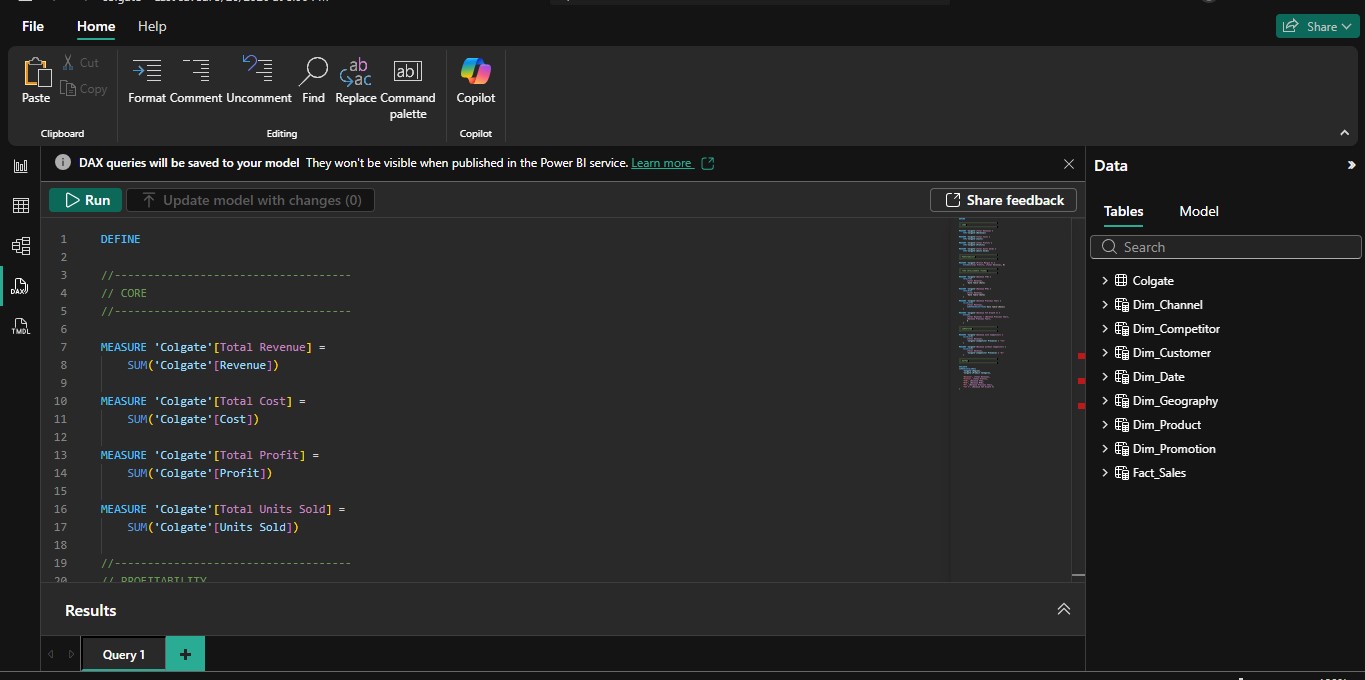 Built a Star Schema, added surrogate keys, created a proper date table, and designed a wireframe for my Colgate dataset project.
