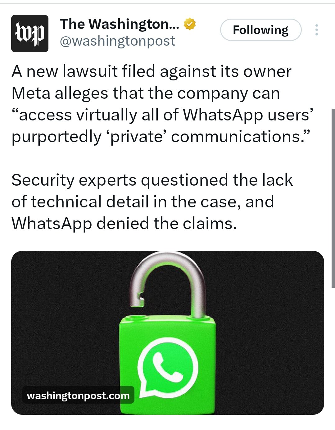 For instance, the recent lawsuit in the US alleging that WhatsApp may not be as end-to-end encrypted as advertised, with claims that Meta could access private messages through internal tools.