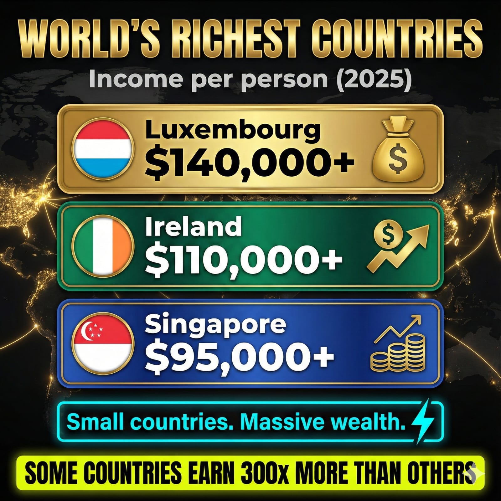 📉 Income per person in some nations is less than $2/day.