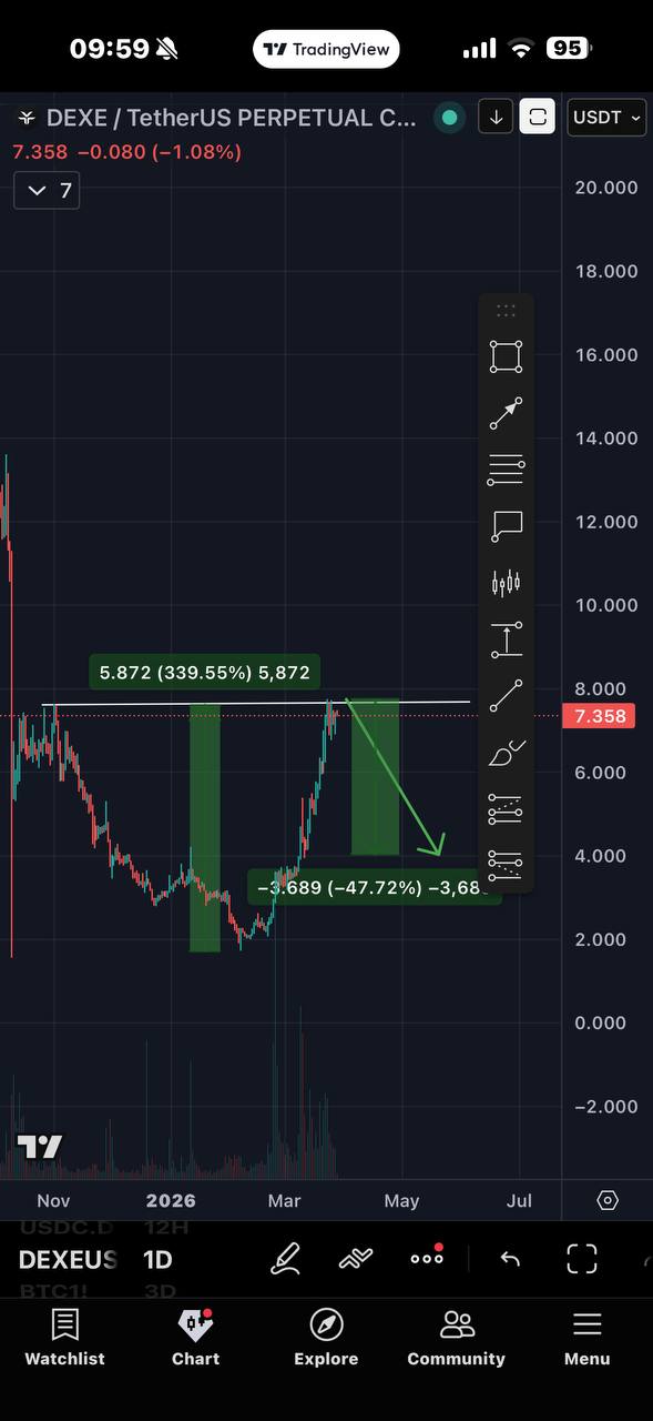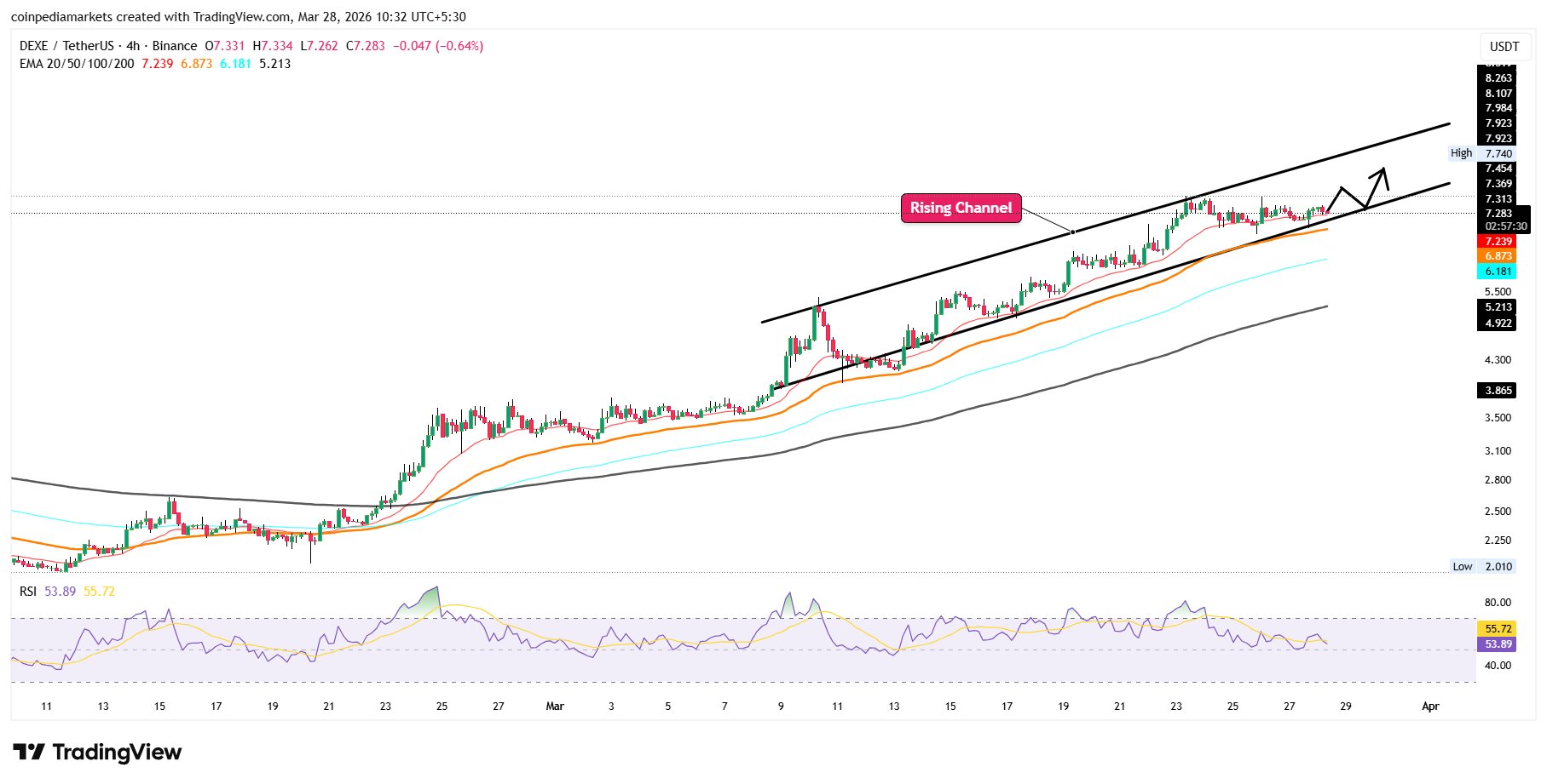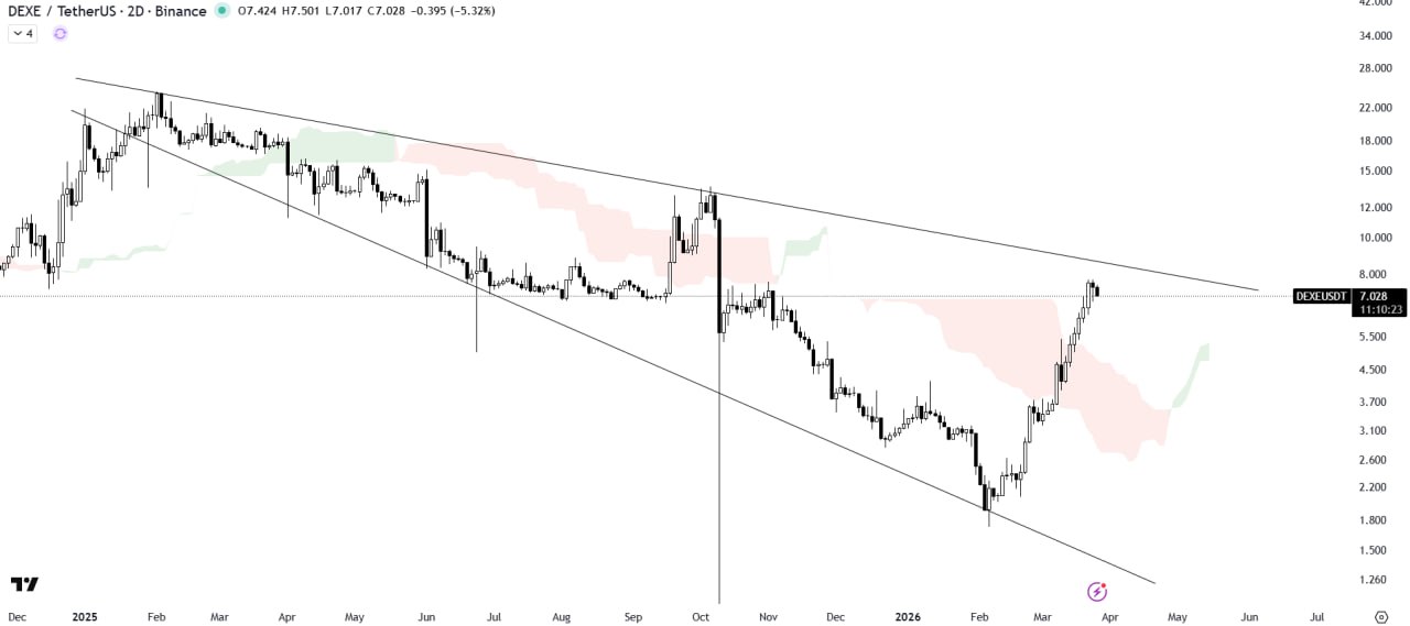 ➡️It has built support at $7.20 and resistance at $7.80. If DEXE holds above $7.20, the price may continue surging higher inside the channel with a potential breakout toward $8.35.
