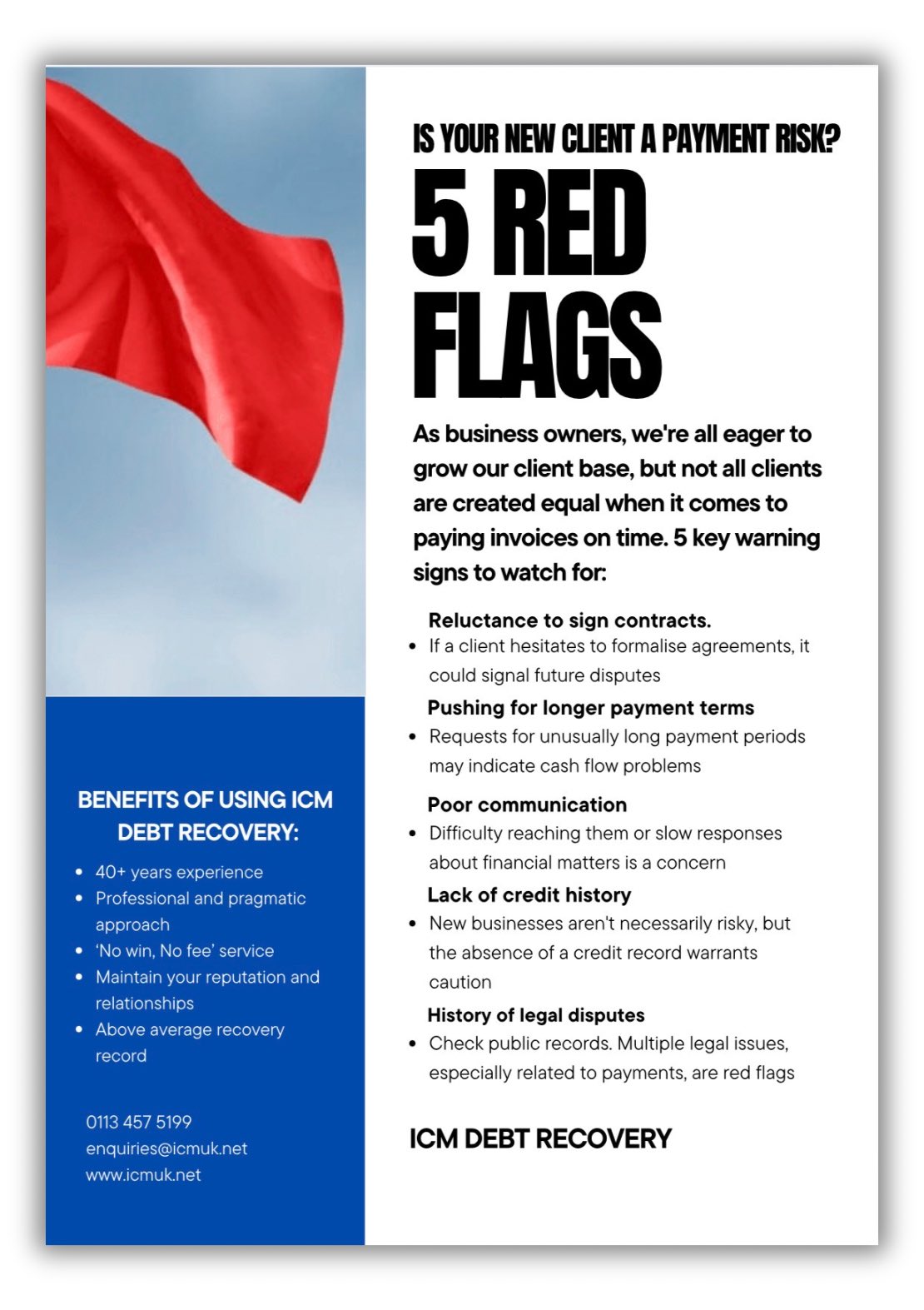 💻| We are always open to new partnerships and clients! If you need help chasing late payments and unpaid invoices, contact ICM today.