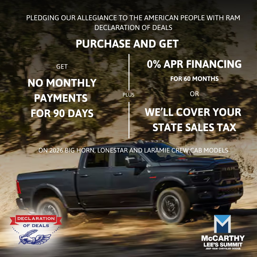 #JRCDLeesSummit #RamTrucks #DeclarationOfDeals #Ram1500 #TruckDeals #KansasCityTrucks #LeesSummitMO #TruckSeason