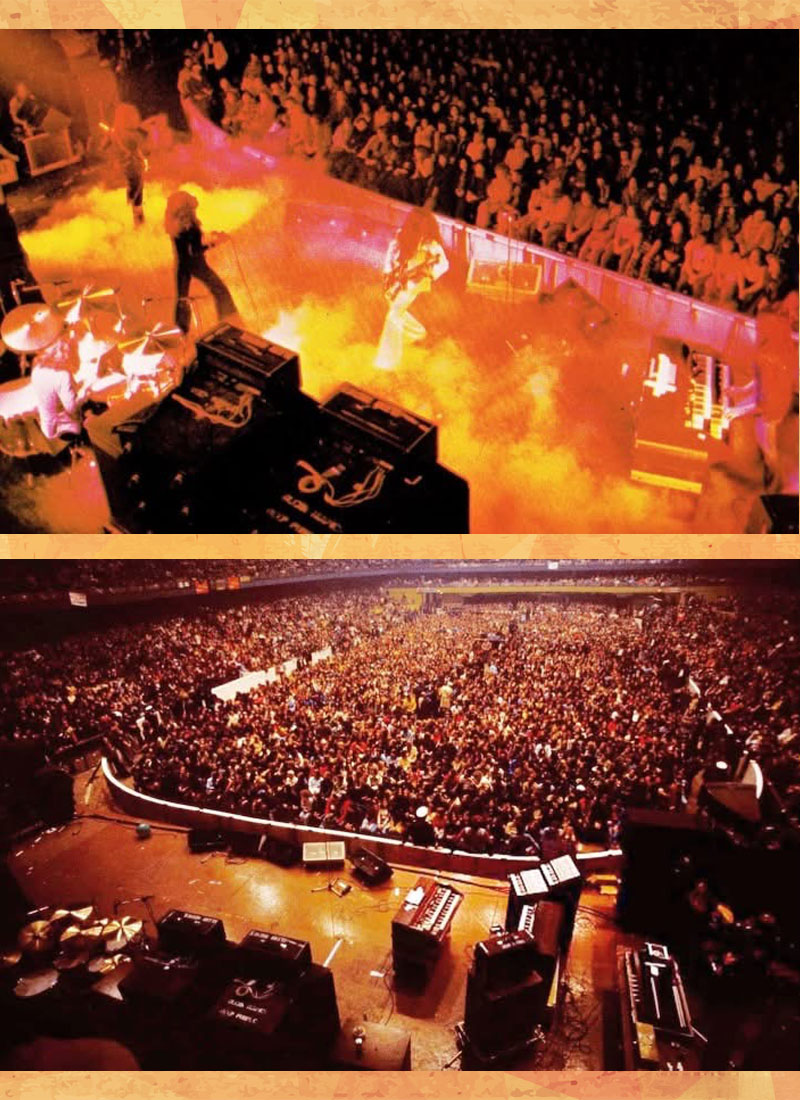 L'esatto posizionamento sul palco delle tastiere di Jon Lord: Organo Hammond + Ring Modulator Maestro, N.2 Arp Odyssey, Piano RMI, Marshall e Leslie Amps (Deep Purple, Chicago 1974) 🤟 💜