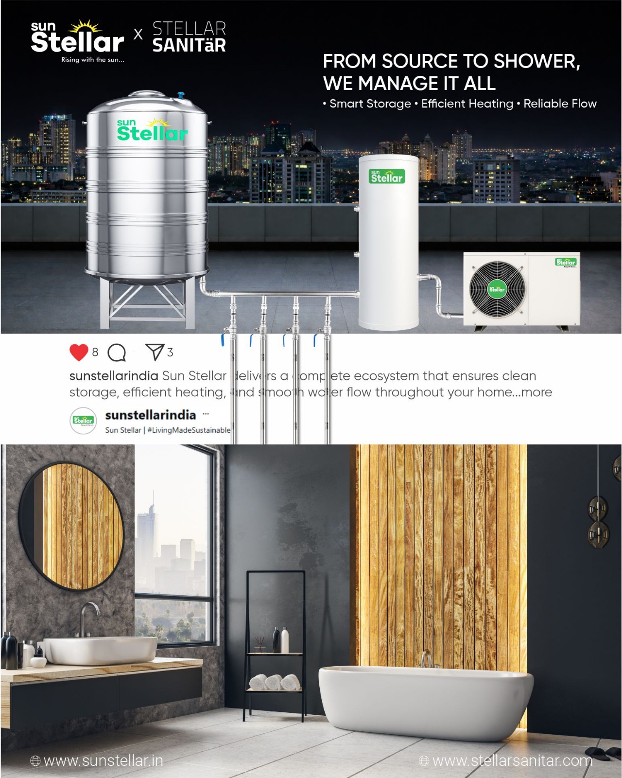 From consistent water pressure to efficient heating and dependable storage, Sun Stellar and Stellar Sanitar ensure comfort flows effortlessly through your home.