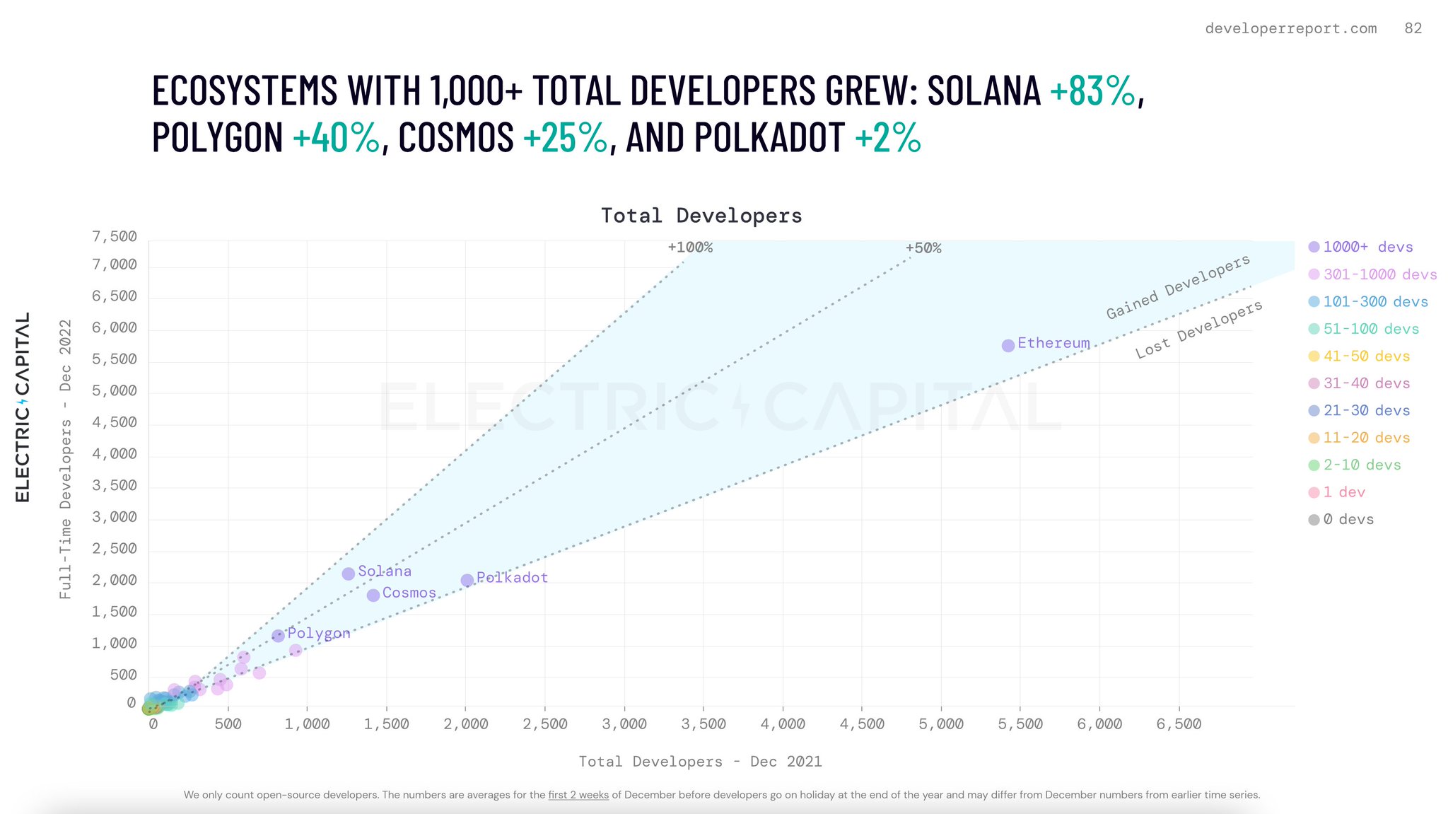 Solana devs are multiplying faster than Dogecoin memes! 🚀 Up 83% in a year, we're basically a crypto unicorn herd.