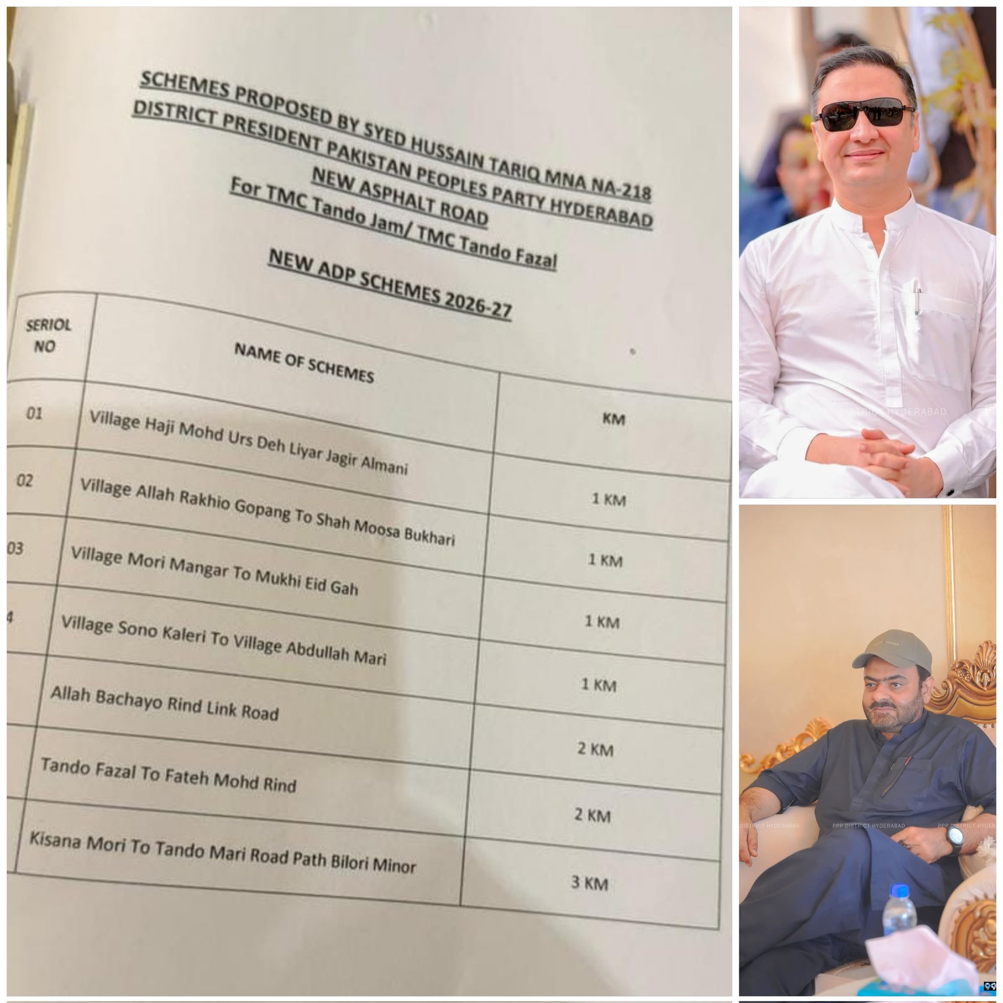 6ٹی ایم سی ٹنڈوجام اور ٹی ایم سی ٹنڈو فضل کے مختلف دیہاتوں کے لیے صدر پاکستان پیپلز پارٹی ضلع حیدرآباد ایم این اے #سید حسین طارق شاہ جاموٹ صاحب پی پی پی رہنما #سیدحسن علی شاہ جاموٹ صاحب کی جانب سے نئی اسفالٹ سڑکوں کی تجویز @TariqSJamotPPP #Developmen