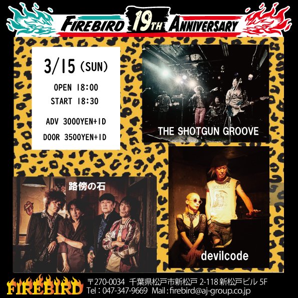 THE SHOTGUN GROOVE @shotgungroove · Mar 16 FIREBIRD presents “19 anniversary party” 伝説として語り継がれるイベントになったのではないか TSGがこのメンツと対バンできるってどれだけ幸せなことか🥰 最高すぎてしびれまくりでした⚡️ そして何より #新松戸firebird 19周年おめでとうございます‼️ #devilcode #路傍の石 #THESHOTGUNGROOVEg 8 35 879
