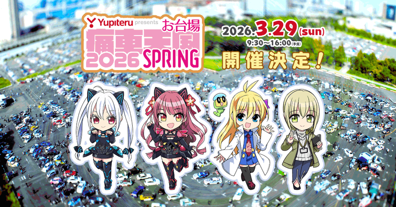 Yupiteru presents お台場痛車天国2026 SPRING、2026年3月29日(日)開催です!