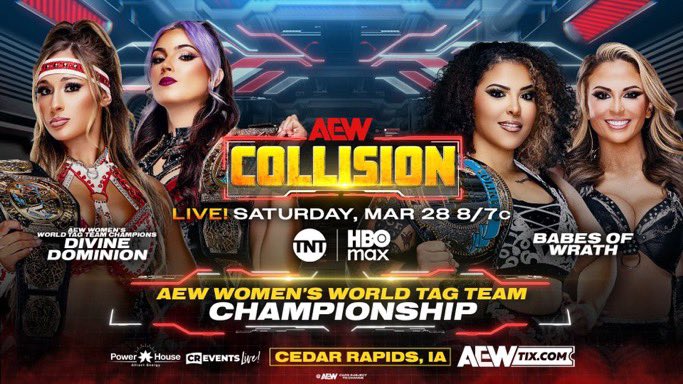 This Saturday, the Divine Dominion will face the Babes of Wrath in a rematch for the AEW women’s tag team championships!