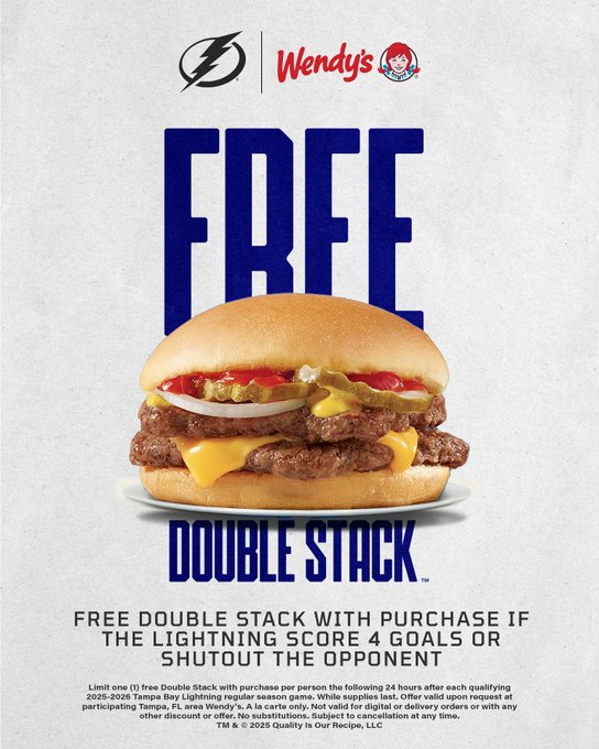 HOCKEY : Le @TBLightning repart de Montréal toujours en tête en tête de la section Atlantique, met fin à une série de défaites et offrent un bon vieux #DoubleStack gratuit chez @Wendys à ses partisans après avoir marqué quatre buts ou plus.