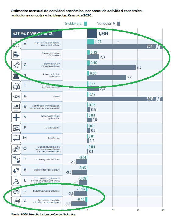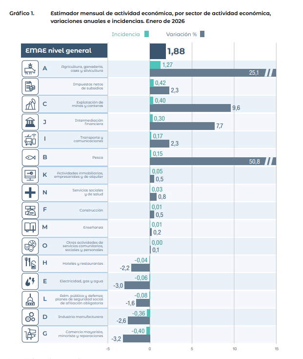 El EMAE de enero confirma un crecimiento del 1,9% impulsado por el sector primario