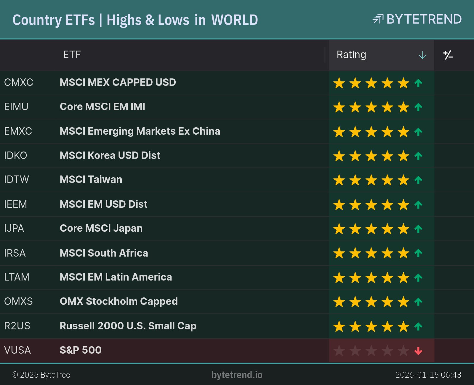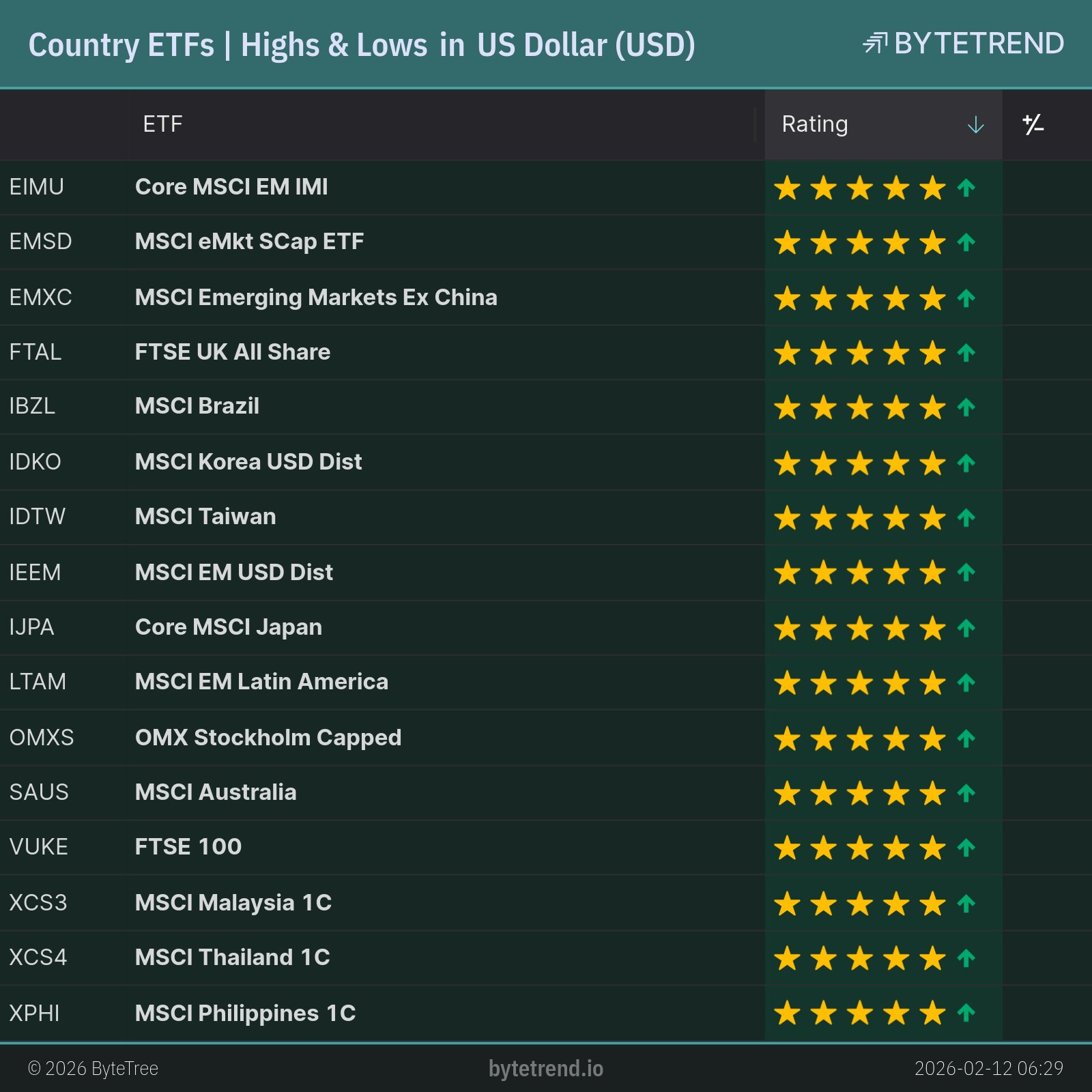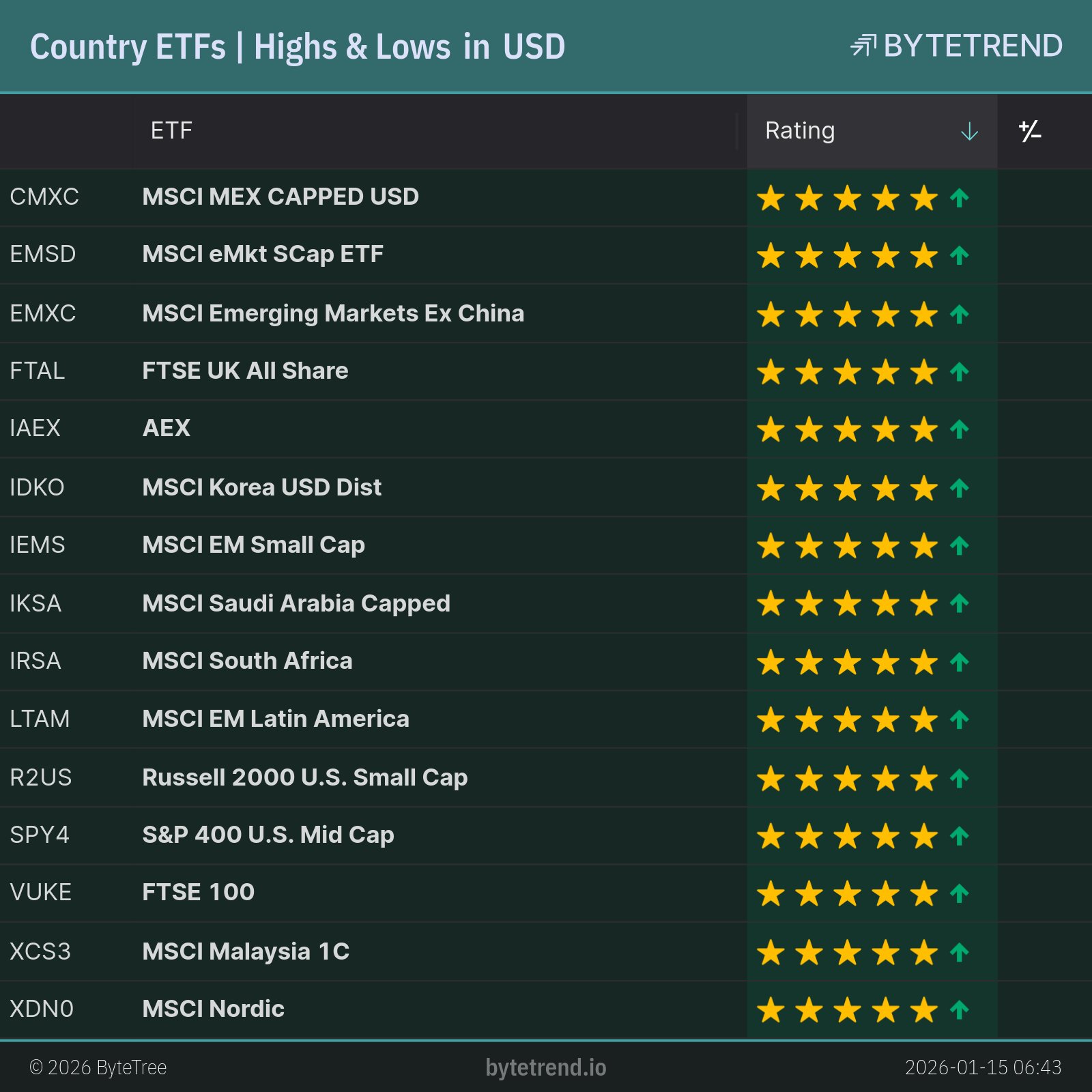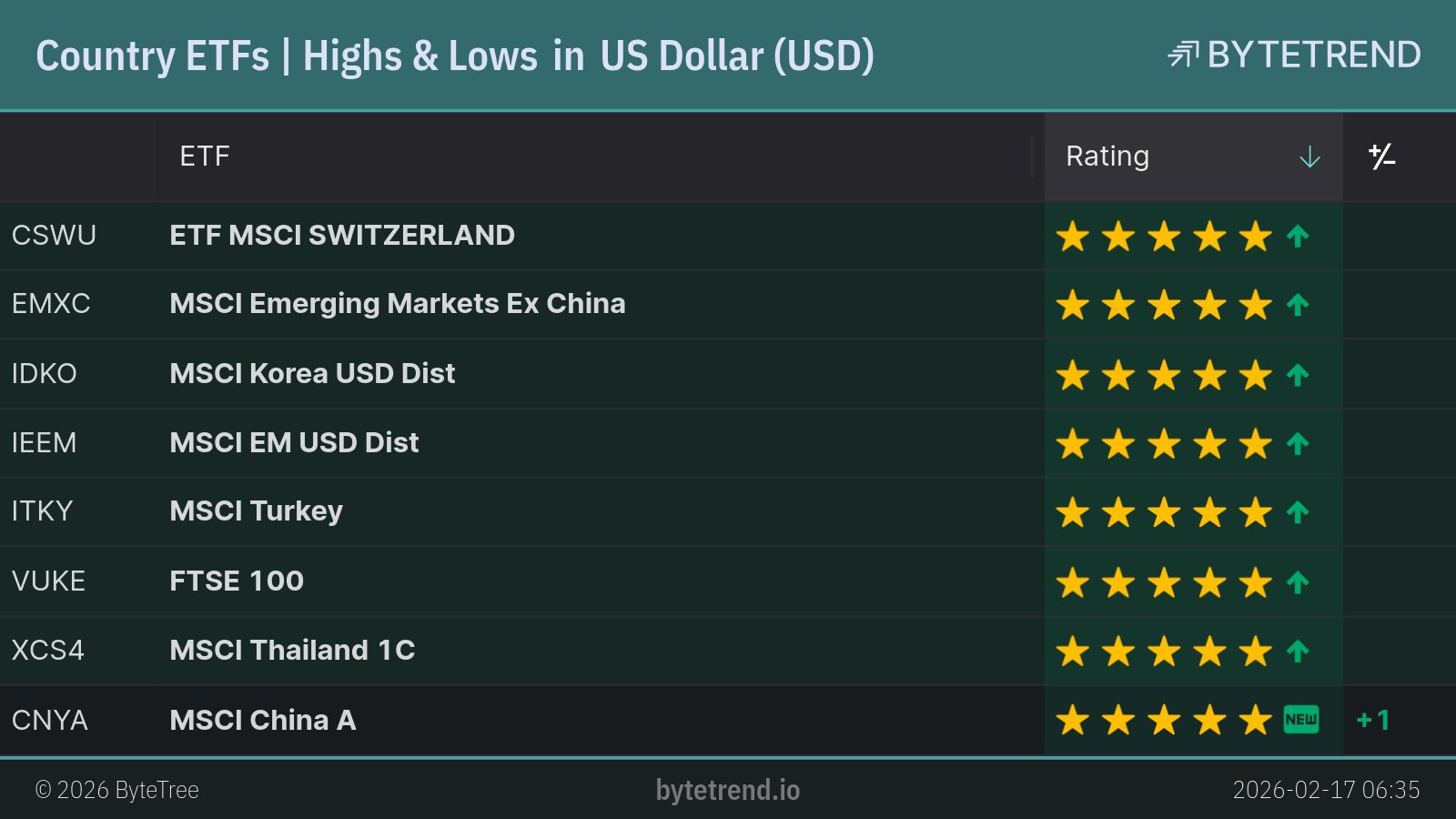 Country ETFs | Highs & Lows in US Dollar