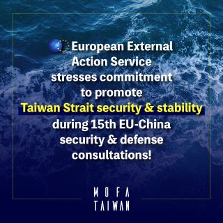 #Taiwan welcomes the #EU stressing its commitment to promote the security of #TaiwanStrait & wider region at the 15th EU-China security & defense consultations. We will deepen cooperation with the EU & other like-minded partners to jointly promote regional peace & prosperity.